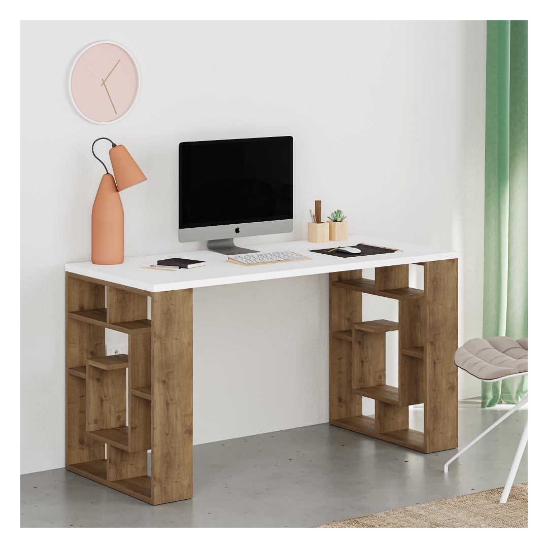 Study Desk Maze - White, Dark Oak