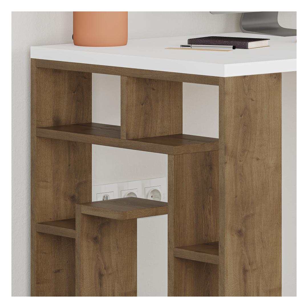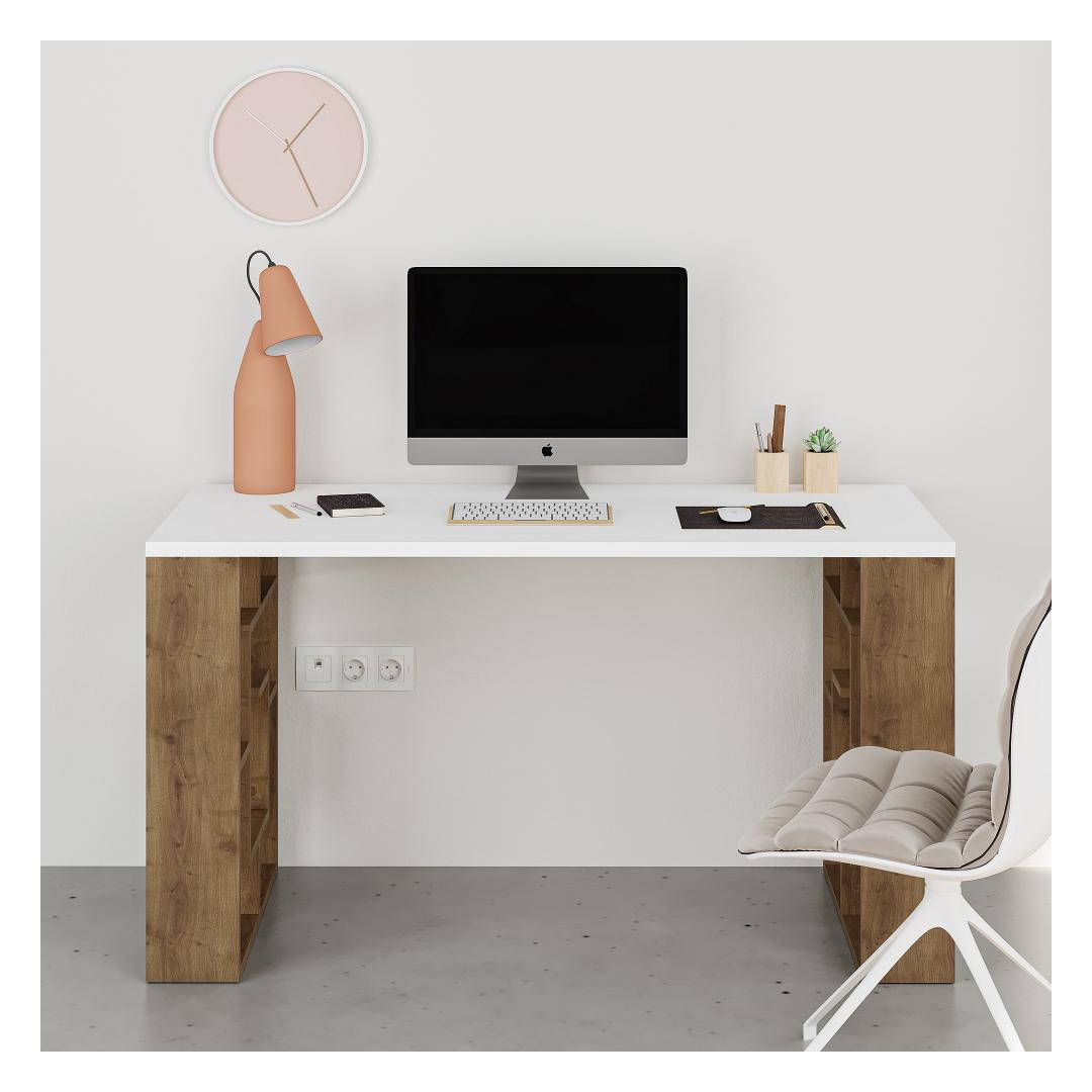 Embrace the beauty of simplicity with our Study Desk. The combination of white and dark oak colors creates a striking contrast that adds a touch of elegance to any room. Its sleek design and Scandinavian-inspired aesthetic make it a perfect fit for hotels, schools, and even your home office.