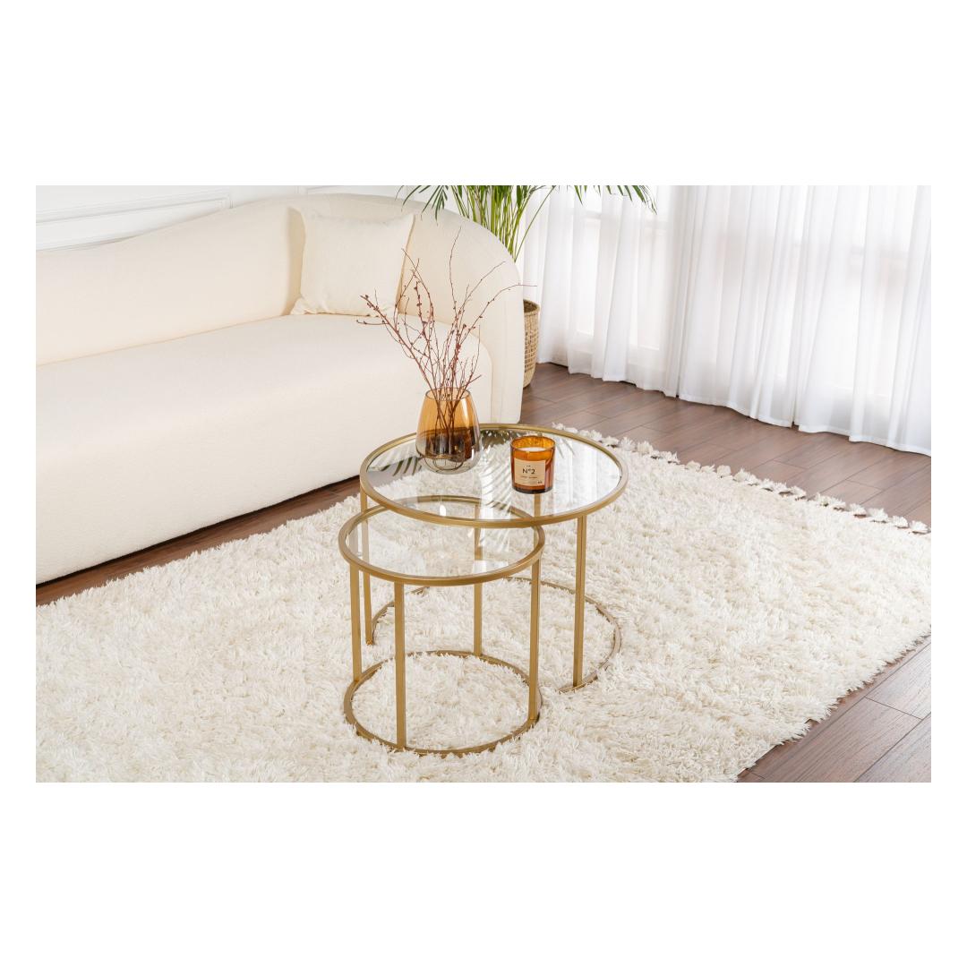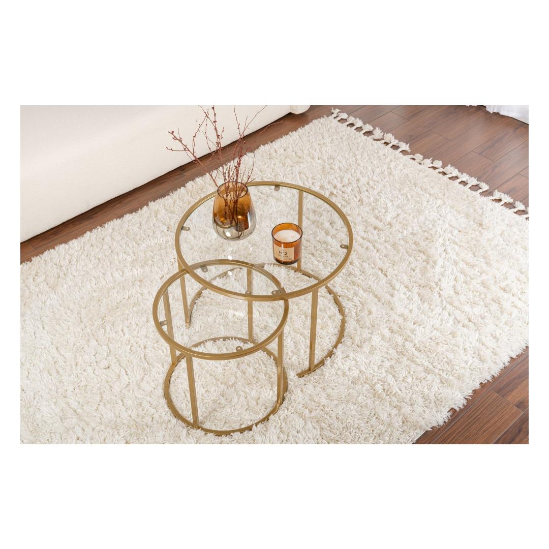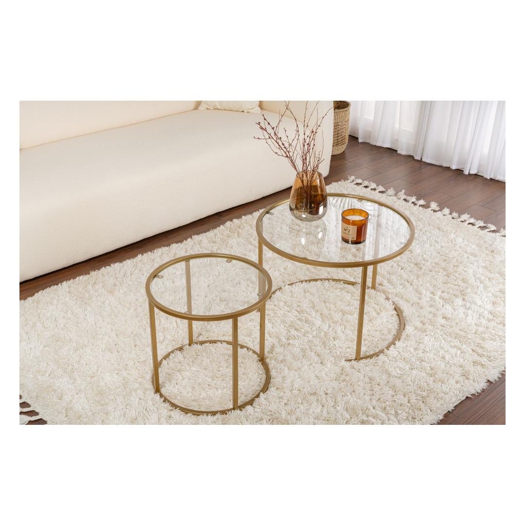 Crafted with tempered glass and a 100% metal frame, this coffee table set exudes quality and style. The transparent glass top adds a touch of sophistication, while the gold accents bring a touch of glamour to your space.