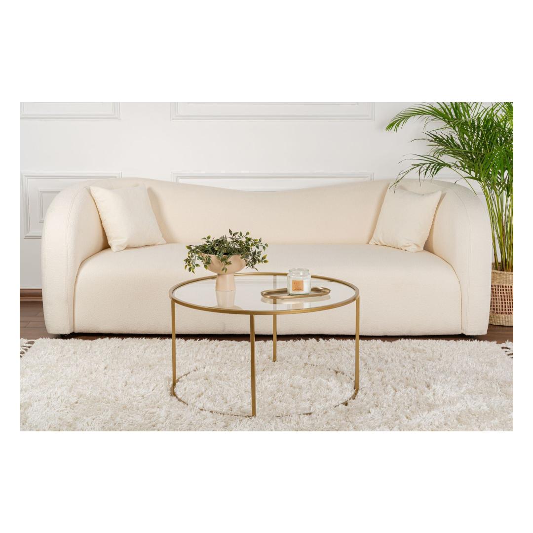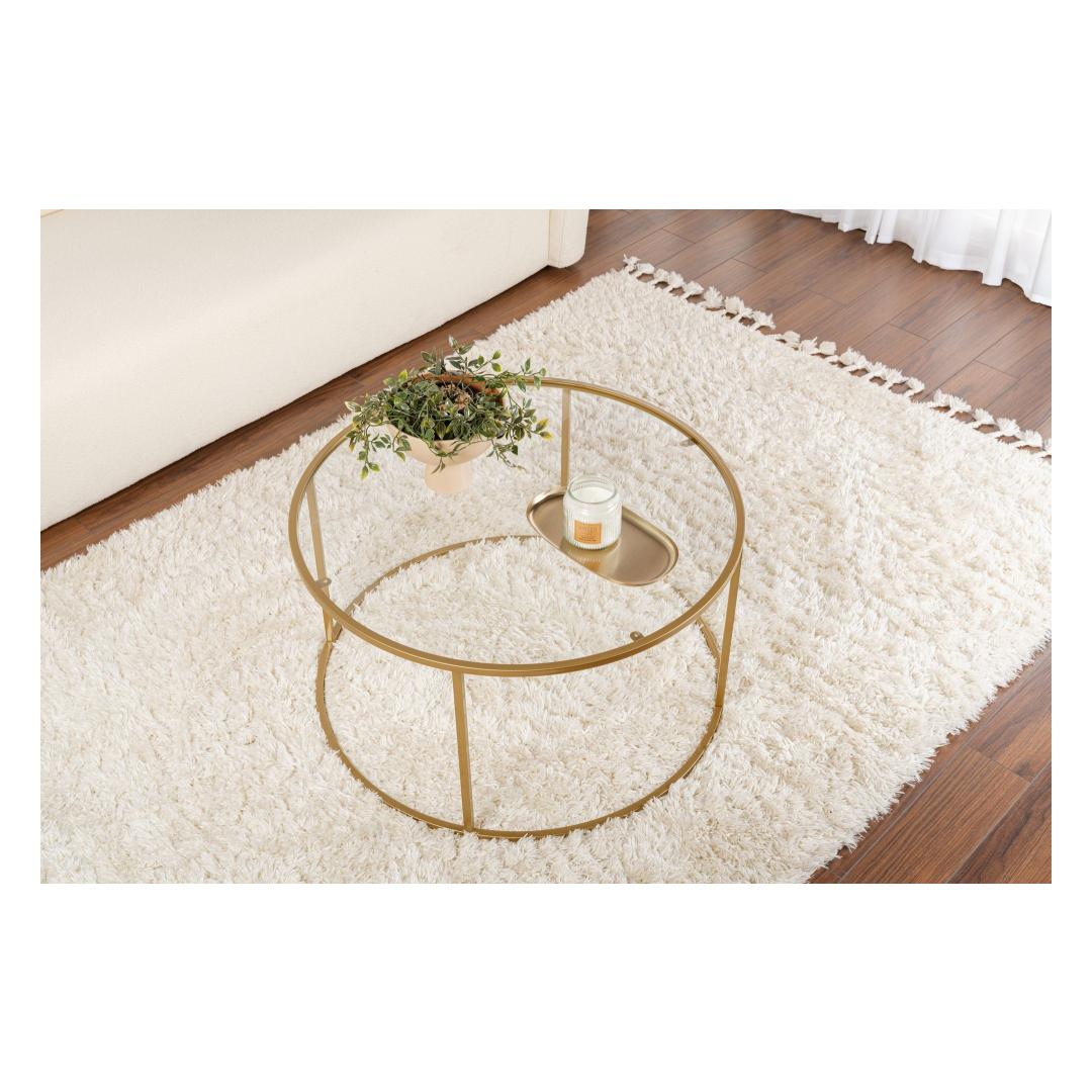 Transform your living space with our stunning Gold and Transparent Coffee Table. This exquisite piece is not just a piece of furniture, but a work of art that will elevate the style of your home. The 100% tempered glass top adds a touch of elegance, while the metal frame provides durability and stability.