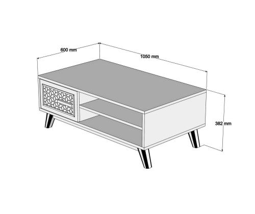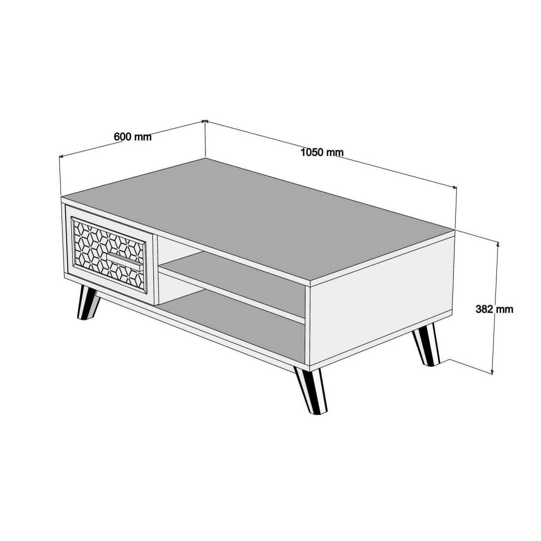 Crafted from 100% melamine coated particle board, this coffee table is built to withstand the test of time. The 18mm thickness ensures sturdiness and stability, allowing you to enjoy this beautiful piece for years to come.