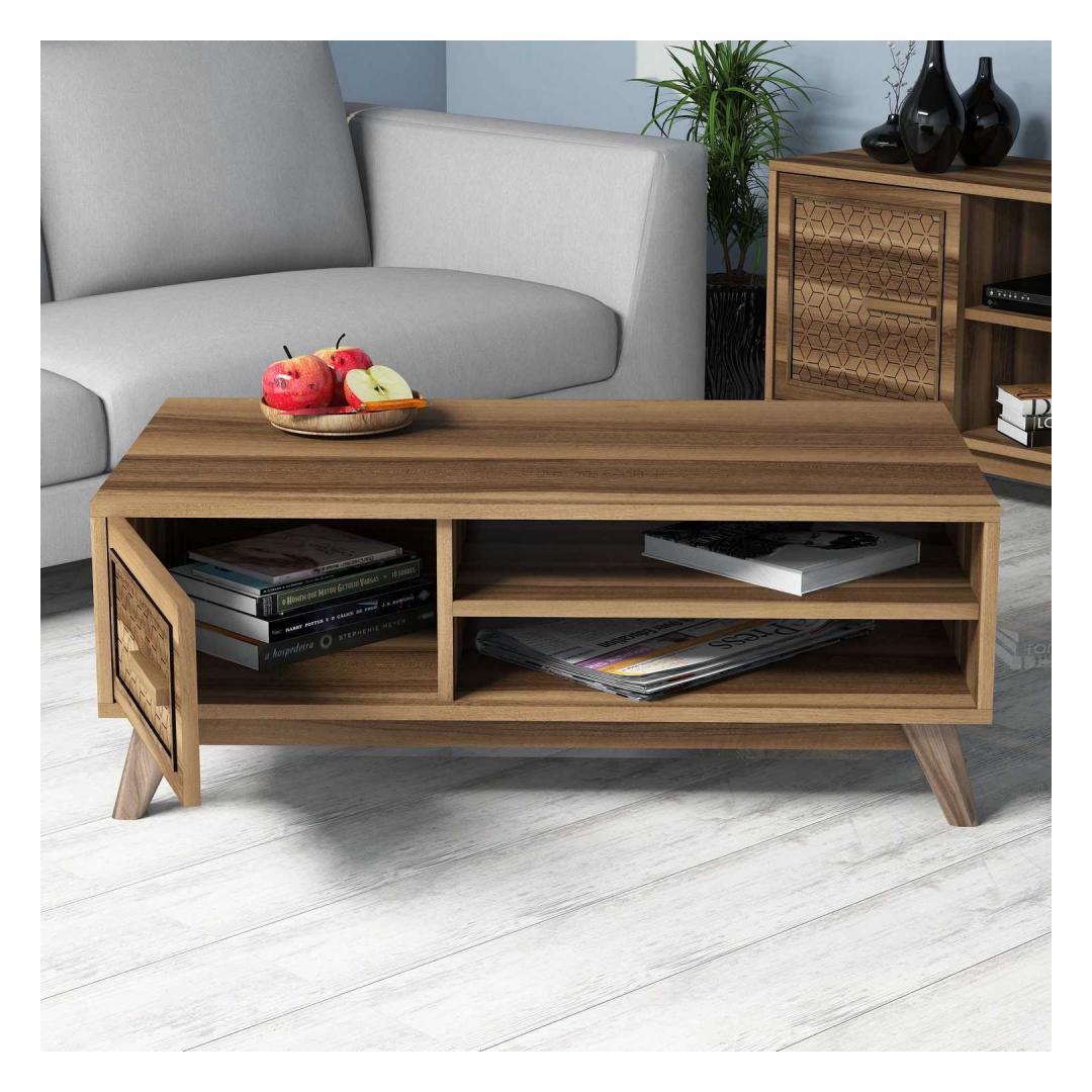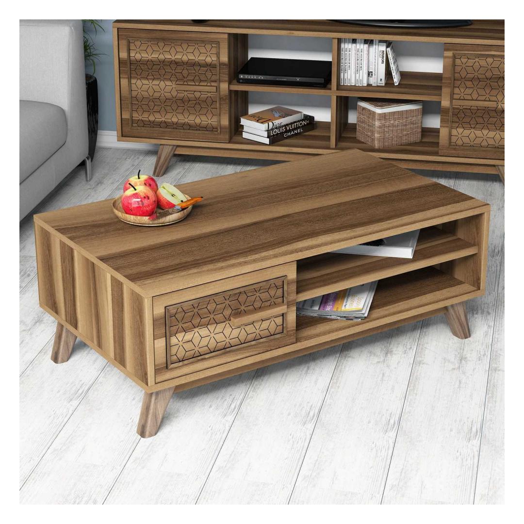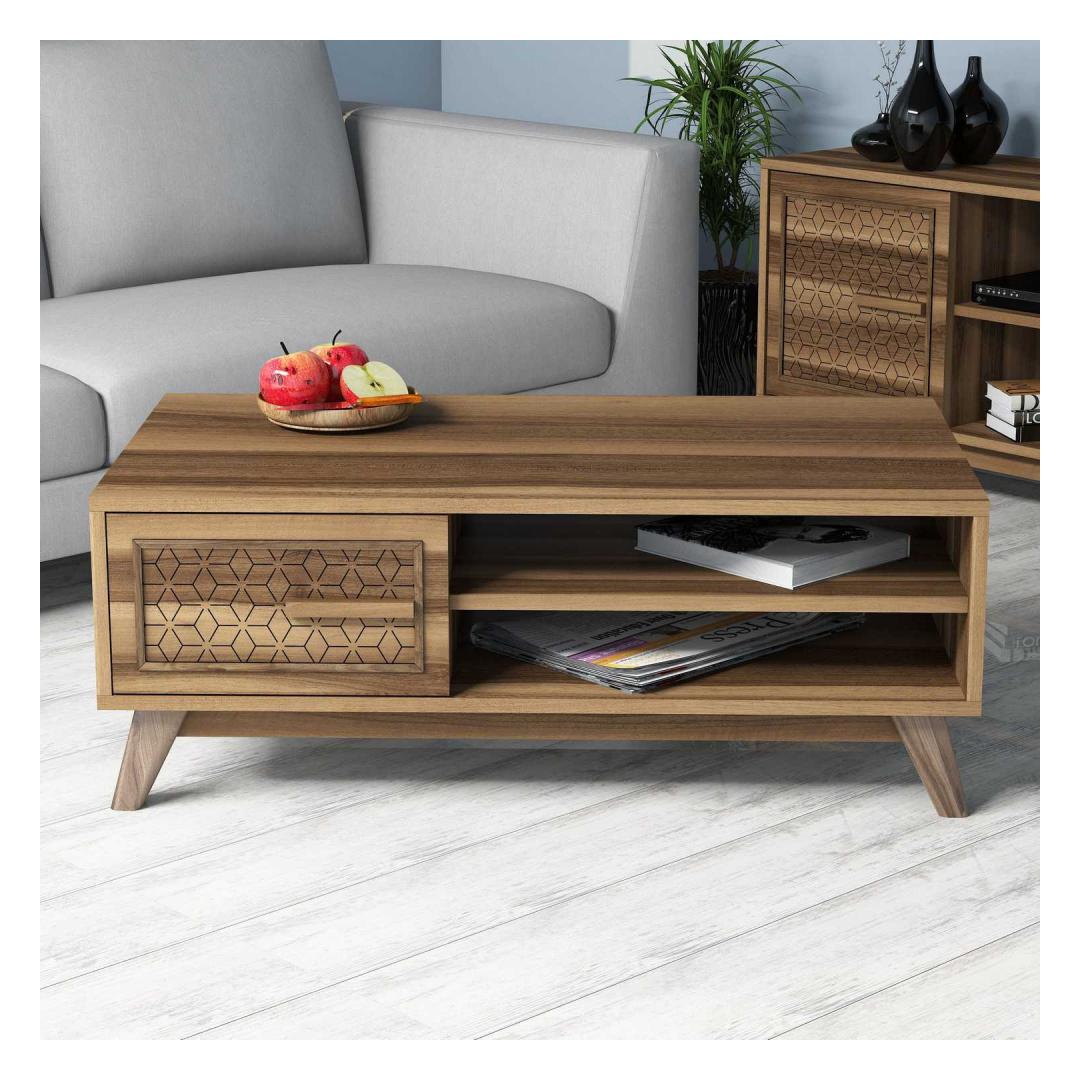 The coffee table is beautifully finished in a rich walnut color, adding a touch of warmth and sophistication to your living space. The walnut hue exudes elegance and pairs perfectly with a variety of color schemes, making it a versatile choice for any home.