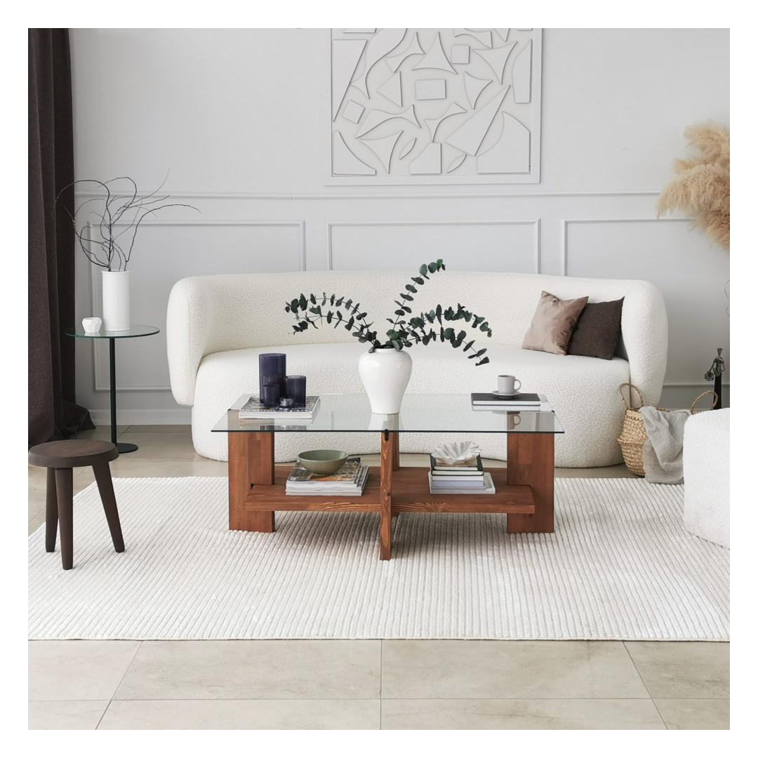 Päivitä asuintilasi kauniilla sohvapöydillämme, jotka on valmistettu 100-prosenttisesti karkaistusta lasista ja massiivipuurungosta. Tyylikäs muotoilu huokuu modernia eleganssia, joten se on täydellinen keskipiste kotiisi.Muunna tilasiLisää olohuoneeseesi hieman hienostuneisuutta tällä upealla sohvapöydällä. Karkaistun lasin ja massiivipuun yhdistelmä luo ainutlaatuisen ja tyylikkään ilmeen, joka tekee vaikutuksen vieraisiin ja kohottaa koko huoneen estetiikkaa.Laadukas käsityötaitoSohvapöytämme on rakennettu kestämään, ja siinä on käytetty laadukkaita materiaaleja ja asiantuntevaa käsityötä. Karkaistu lasipinta on kestävä ja helppo puhdistaa, kun taas massiivipuurunko tarjoaa vakautta ja tukea kaikille olohuoneen tarvikkeillesi.Monipuolinen muotoiluOlepa tyylisi sitten moderni, perinteinen tai maalaismainen, tämä sohvapöytä sopii mihin tahansa sisustukseen. Väri: Puinen
