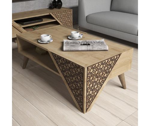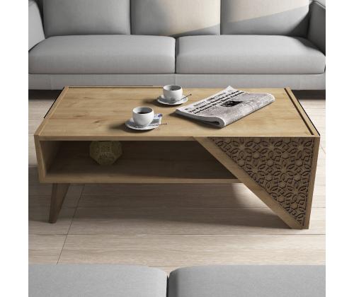 Made from 100% melamine coated particle board, this coffee table is not only visually stunning but also built to last. The 18 mm thickness ensures durability and stability, allowing you to enjoy its beauty for years to come.