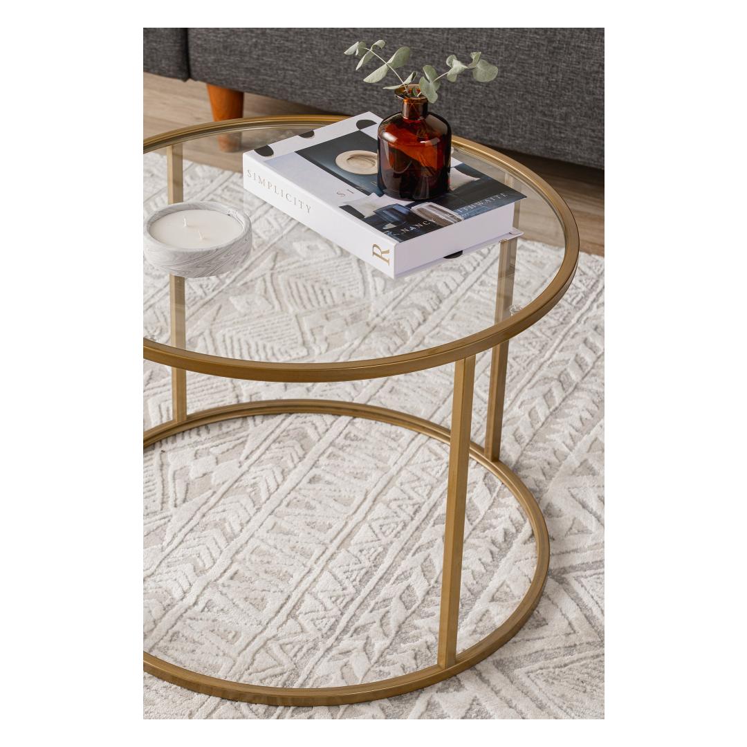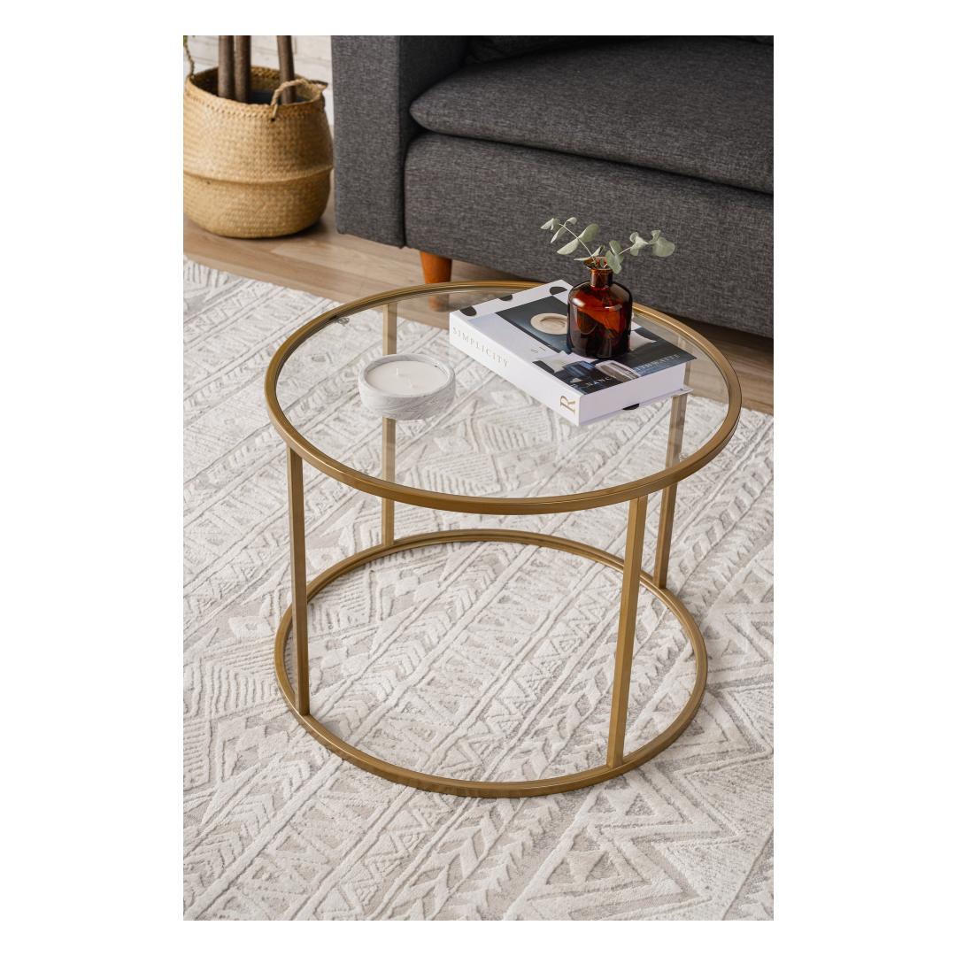 Add a touch of glamour to your living room with this exquisite coffee table. The gold color adds a touch of luxury, while the tempered glass top creates a modern and airy feel. Whether you're enjoying a cup of coffee or entertaining guests, this table will impress with its stylish design.