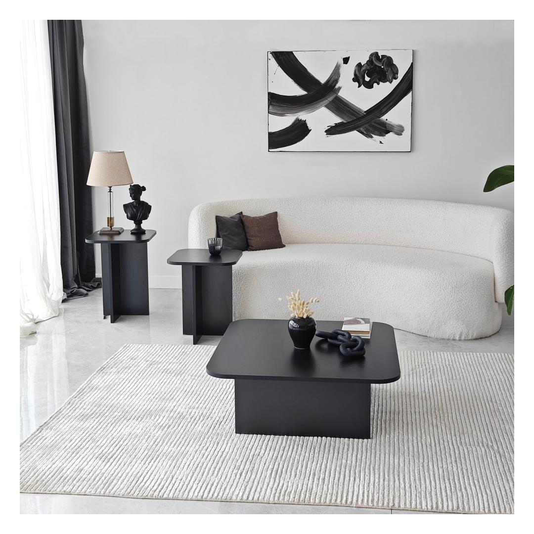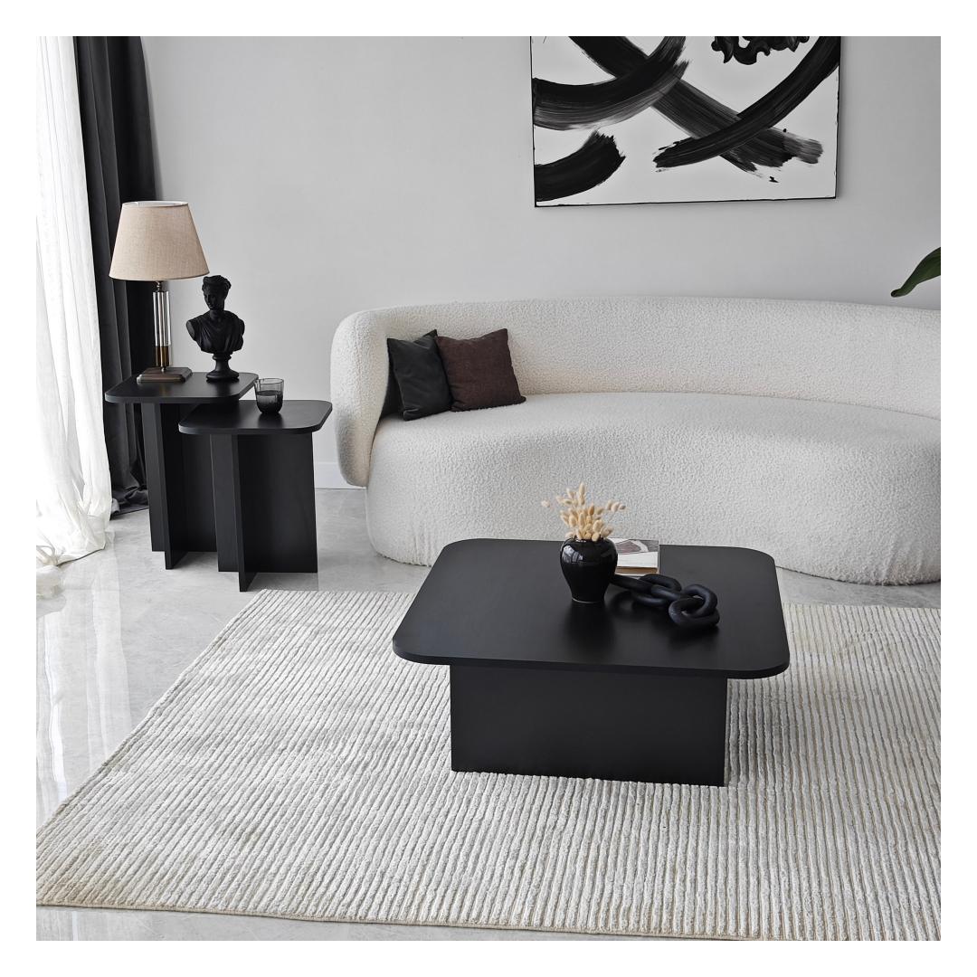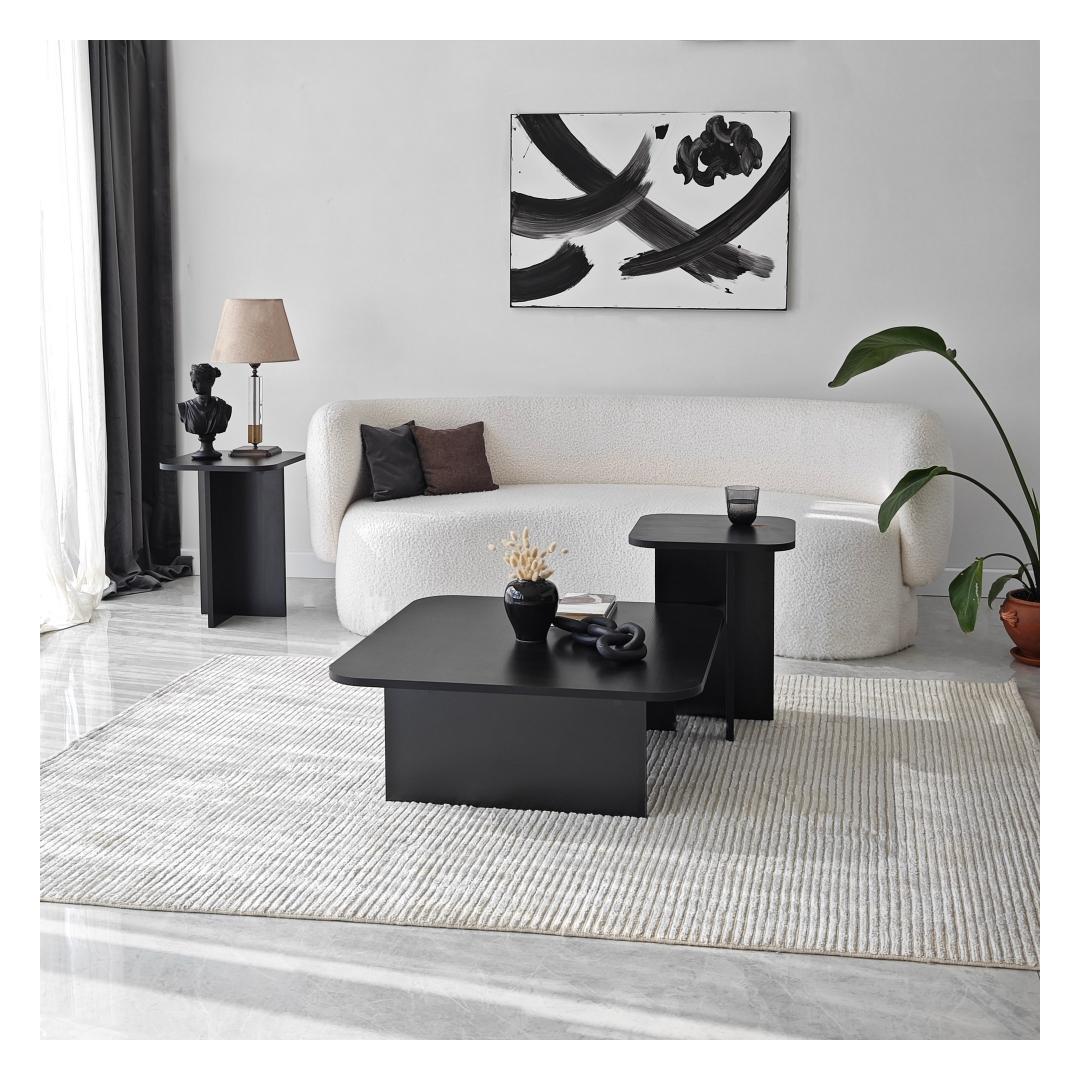 Muunna olohuoneesi upealla sohvapöytäsarjallaOletko kyllästynyt tylsään ja elottomaan olohuoneeseesi? on aika puhaltaa tilaan uutta elämää upealla sohvapöytäsarjalla. Tämä lumoava setti kohottaa välittömästi kotisi tyyliä ja tunnelmaa, jättäen sinut ja vieraasi ihastumaan. Verraton tyylikkyys ja kestävyysSohvapöytäsarjamme on valmistettu 100 % melamiinipinnoitetusta lastulevystä. Tämä takaa paitsi sen upean ulkonäön myös poikkeuksellisen kestävyyden, jonka ansiosta voit nauttia sen kauneudesta vuosien ajan. Raikkaan musta väri lisää tyylikkyyttä ja nykyaikaisuutta mihin tahansa huoneeseen, joten se on täydellinen lisä kotisi sisustukseen. Luo harmoninen ja kutsuva ilmapiiriSohvapöytäsarjassa on kolme osaa, jotka on suunniteltu täydentämään toisiaan täydellisesti. Eri koot ja mitat lisäävät syvyyttä ja ulottuvuutta asuintilaasi luoden harmonisen ja kutsuvan ilmapiirin. Olitpa sitten järjestämässä kokousta tai nauttimassa rauhallisesta illasta yksin, tämä setti tarjoaa täydelliset puitteet kaikkiin tarpeisiisi. Tekniset tiedot:Materiaali:Materiaali:Materiaali:Materiaali:Materiaali:Materiaali:Materiaali:Materiaali:Materiaali:Materiaali:Materiaali:Materiaali:Materiaali:100 % melamiinipinnoitettua lastulevyäPaksuus:18 mmLeveys:40 cm,Korkeus:50 cm,Syvyys:40 cm (1 kpl)Leveys: (1 kpl)Leveys: 40 cm, Korkeus: 55 cm, Syvyys: 40 cm (1 kpl)Leveys: 80 cm, Korkeus: 30 cm, Syvyys: 80 cm (1 kpl)Väri: MustaVahvista olohuoneesi sohvapöytäsarjalla ja koe täydellinen yhdistelmä eleganssia, kestävyyttä ja toimivuutta. Älä missaa tätä tilaisuutta muuttaa kotiasi tyylin ja mukavuuden tyyssijaksi. Tilaa nyt ja anna taikuuden avautua silmiesi edessä! Väri: Musta