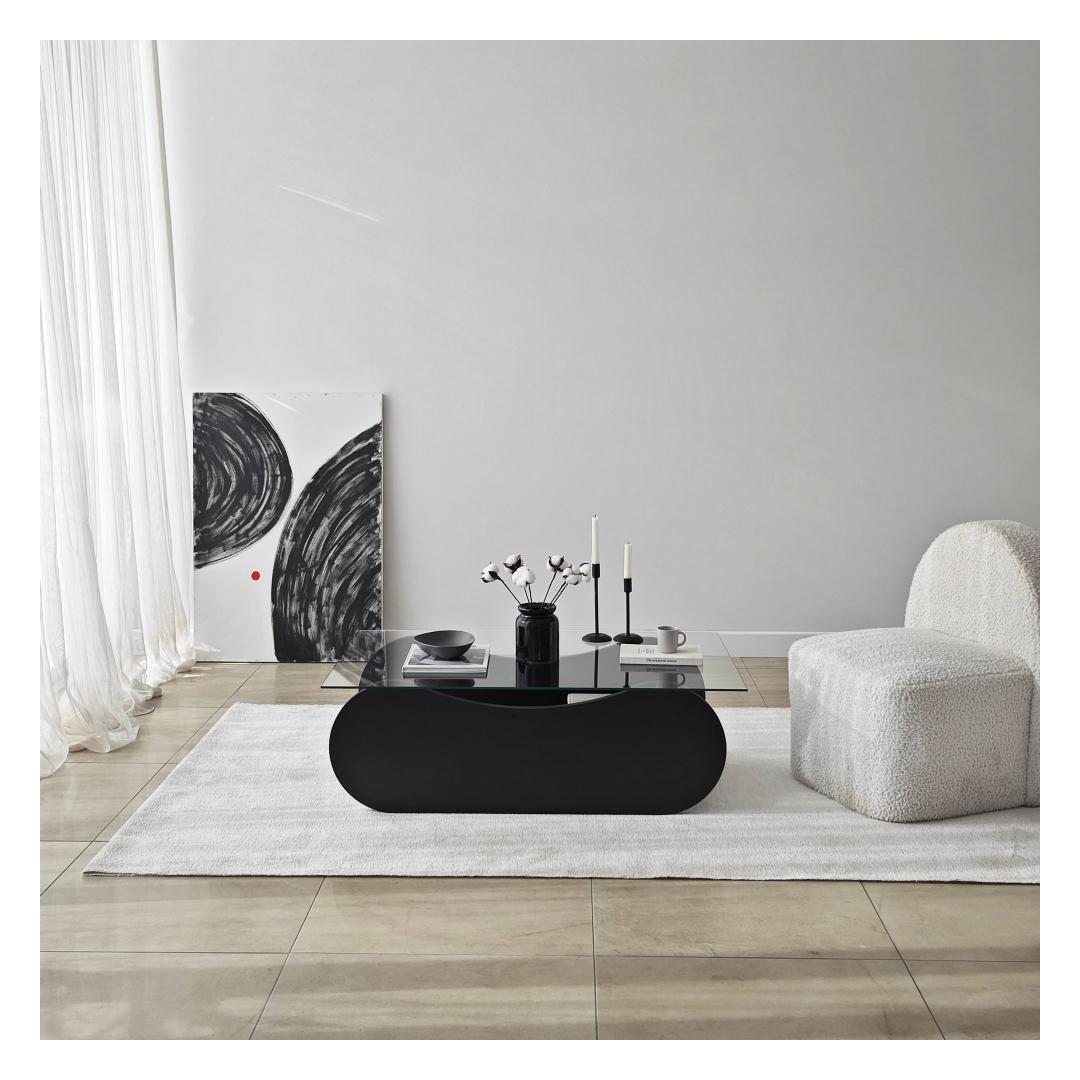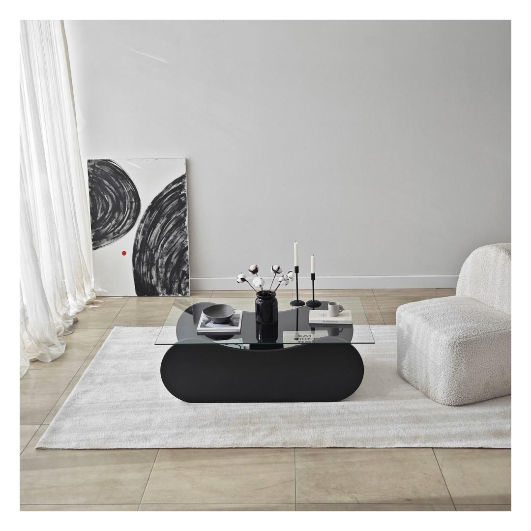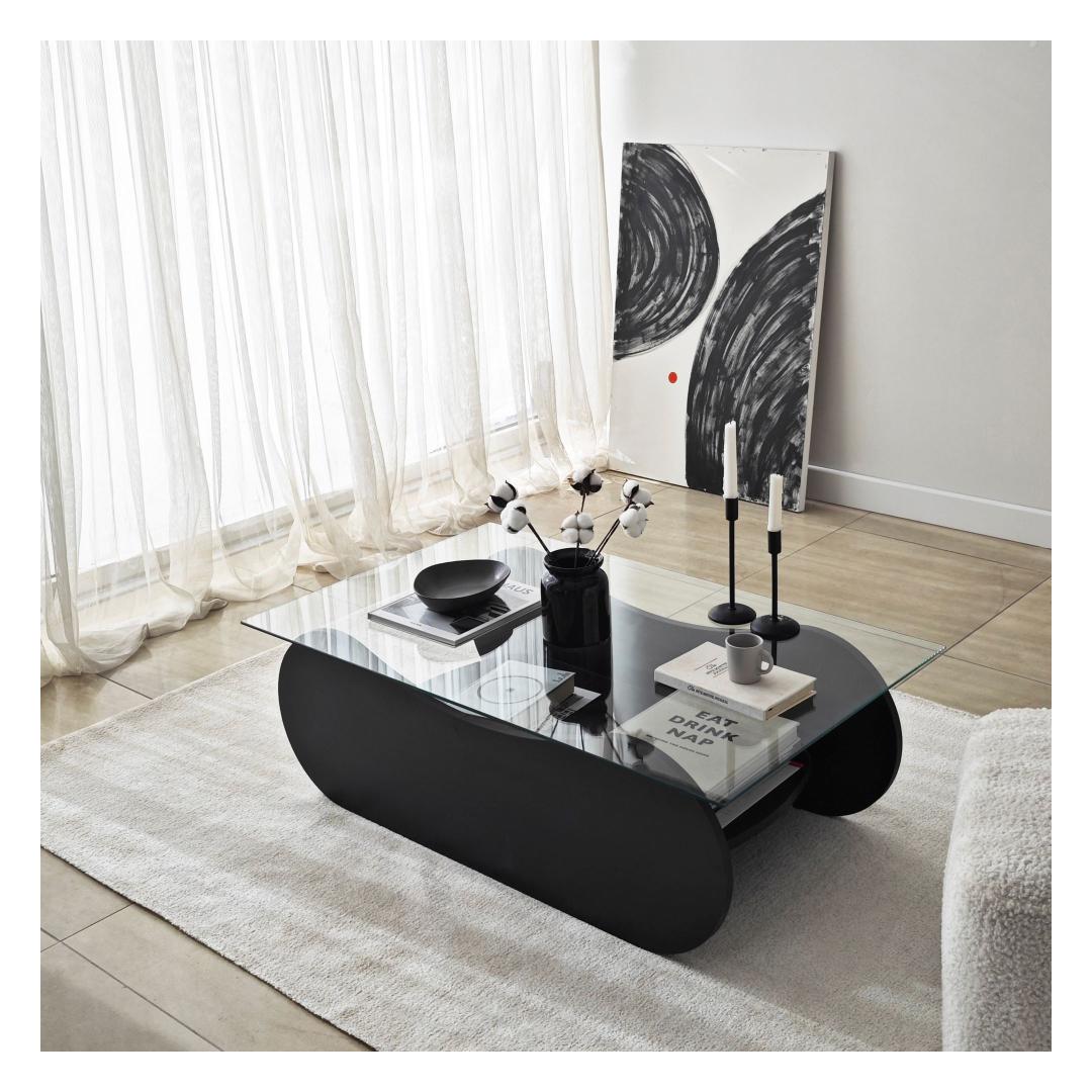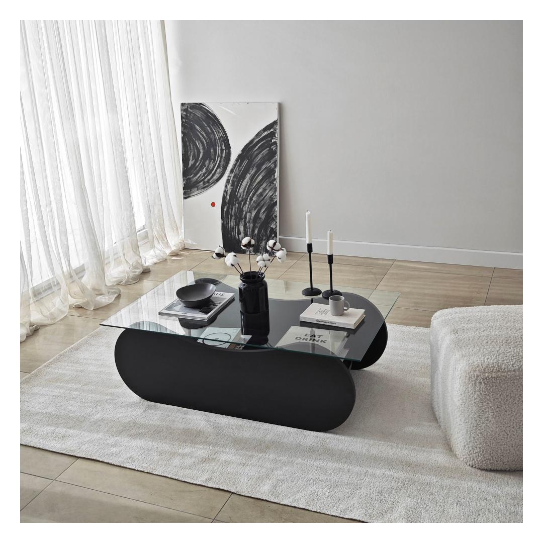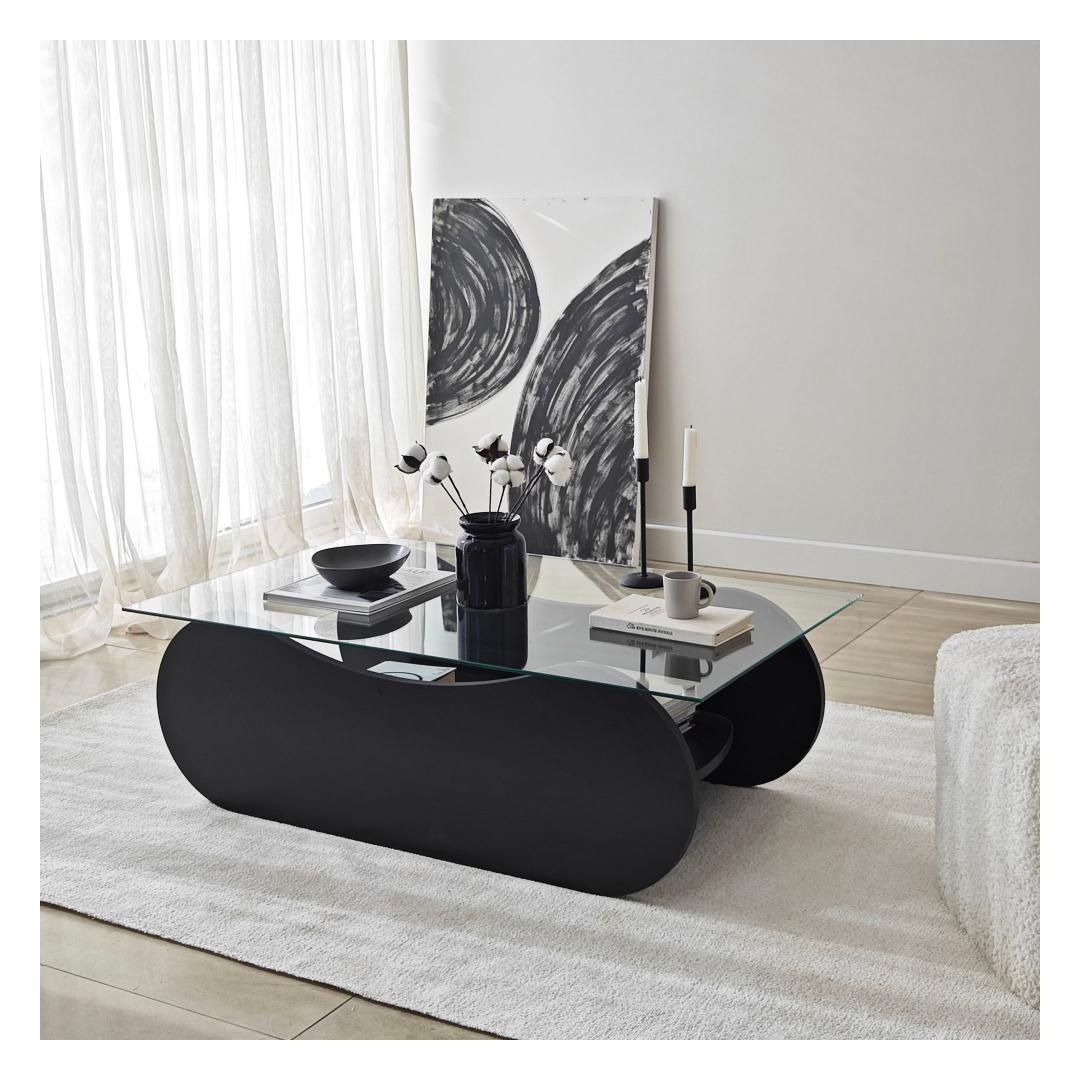 Transform your living space with our stunning coffee table, crafted with 100% tempered glass for a sleek and modern look. The transparent glass top allows you to showcase your favorite decor pieces while the black melamine coated particle board frame adds a touch of sophistication to any room.