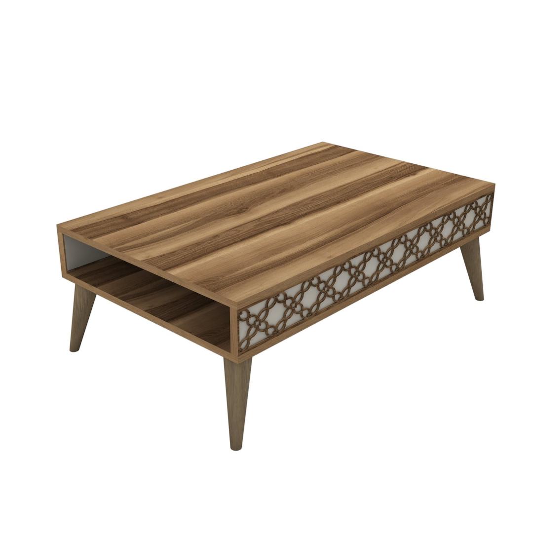 Crafted from 100% melamine coated particle board, this coffee table is built to last. The 18 mm thickness ensures sturdiness and stability, while the 4 mm CNC relief adds a touch of intricate detail that sets it apart from ordinary coffee tables. The plastic legs provide excellent support, ensuring that your table remains steady and secure for years to come.