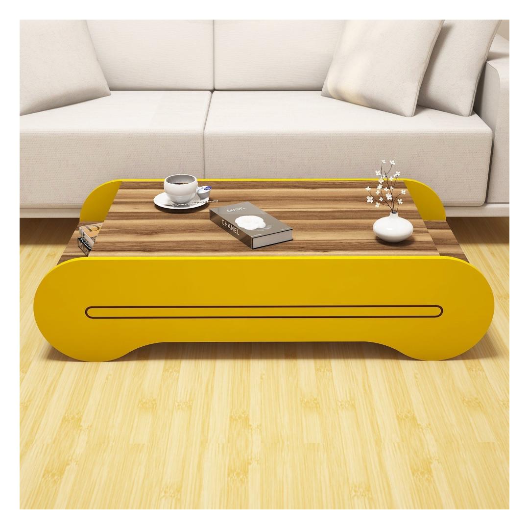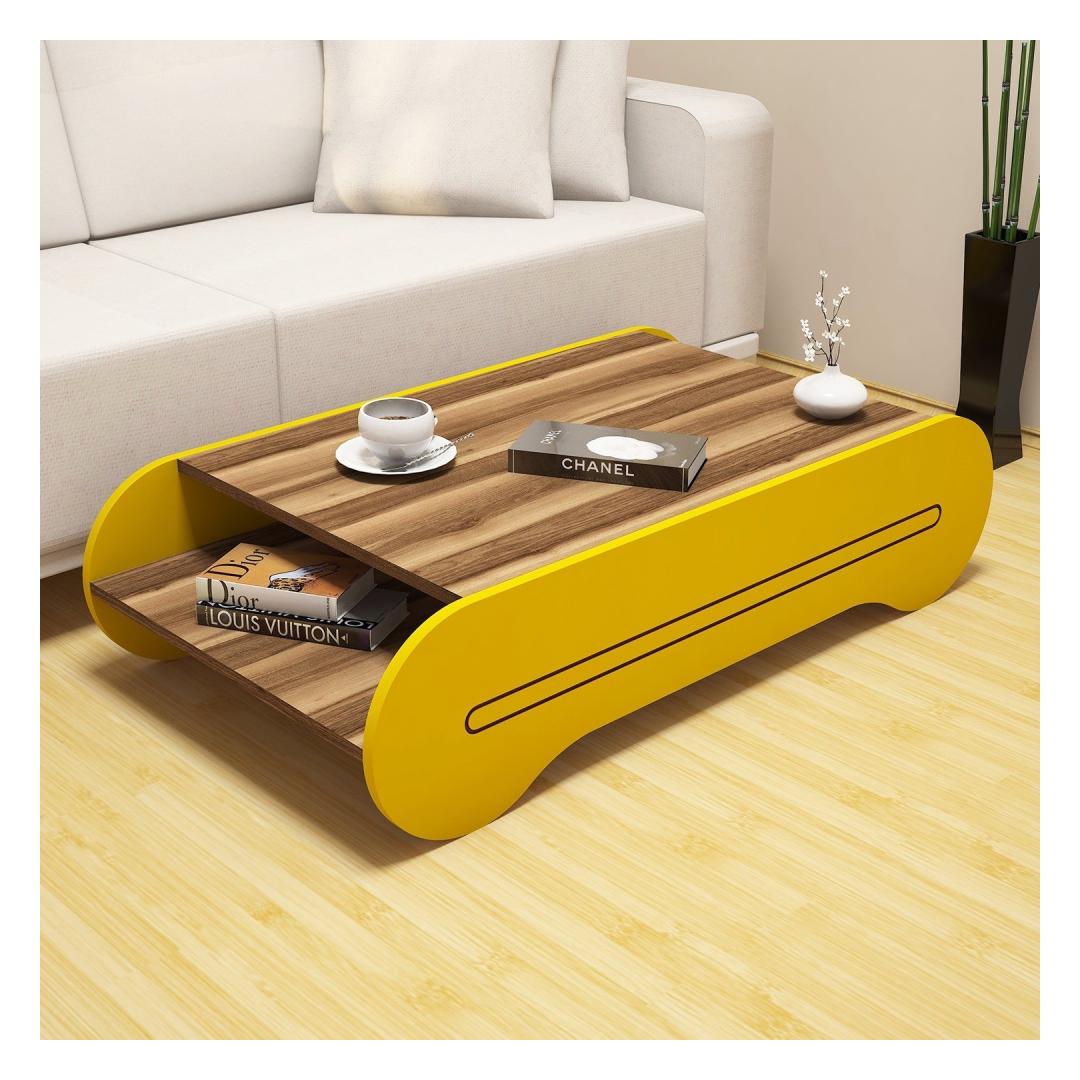 Made from 100% melamine coated particle board, our coffee table is not only durable but also eco-friendly. The natural wood grain finish in walnut and yellow colors brings the beauty of nature right into your home.