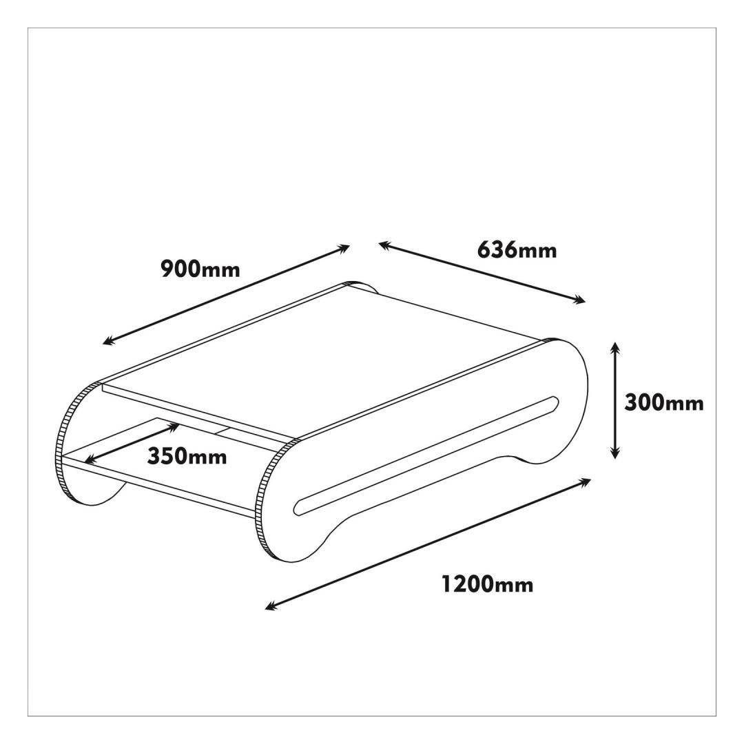With a thickness of 18mm, this coffee table is sturdy and built to last. The generous dimensions of 120cm in width, 30cm in height, and 63.6cm in depth provide ample space for your favorite books, magazines, and decor items. The bottom shelf, with a width of 35cm, offers additional storage for your convenience.