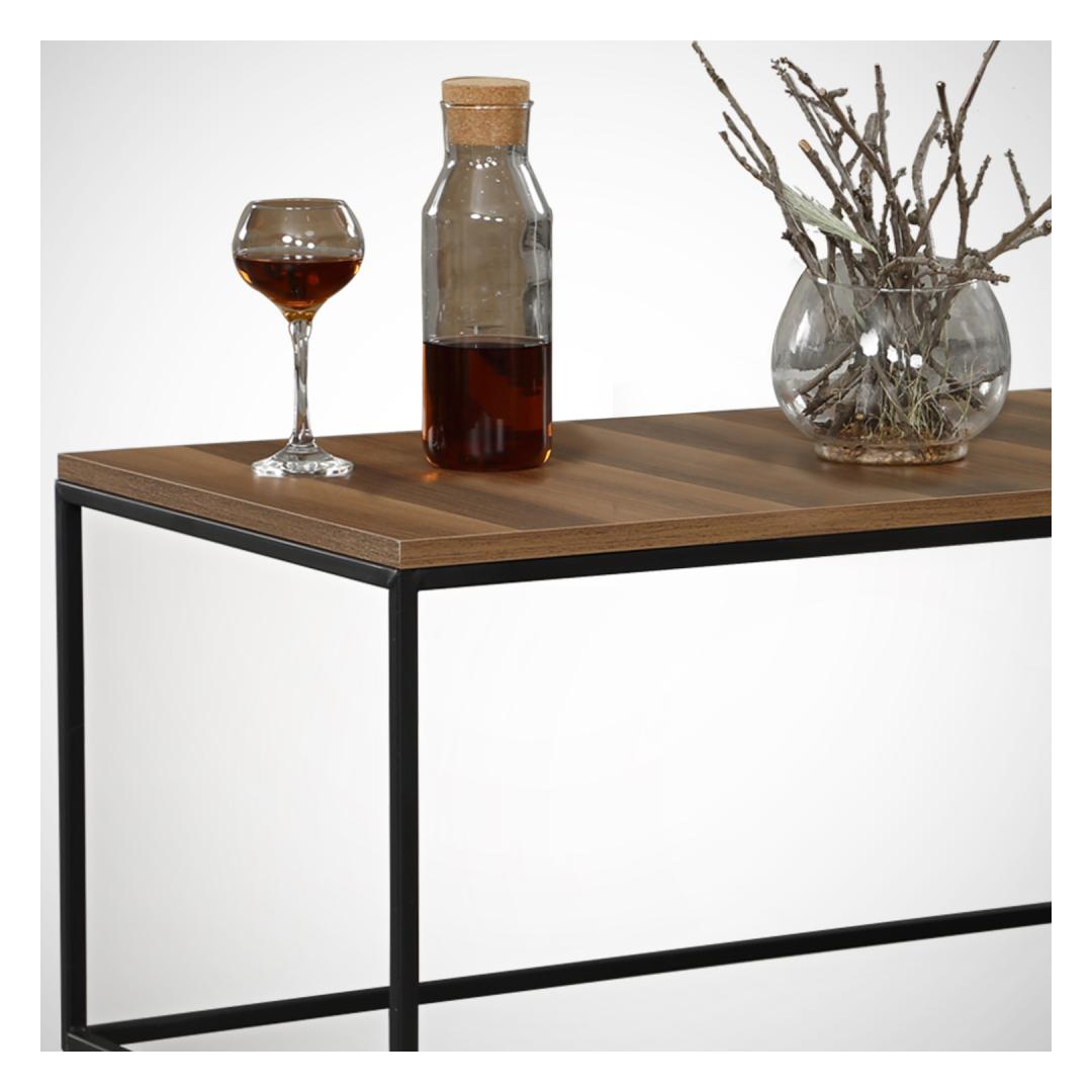 Embrace the concept of a hotel-inspired, industrial aesthetic with this coffee table. Its clean lines and minimalist design capture the essence of modern luxury, while the walnut color adds a touch of warmth and comfort. Whether you're enjoying a cup of coffee or hosting a gathering with friends, this coffee table will be the centerpiece of your space, creating a captivating focal point.