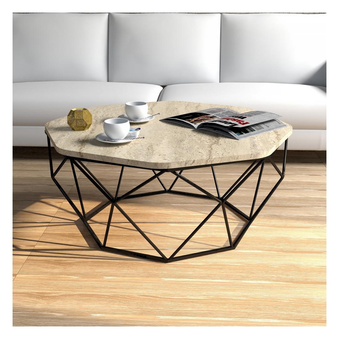 Elevate your living space with our stunning Marble Coffee Table. This exquisite piece exudes elegance and sophistication, making it the perfect focal point for any room. The luxurious travertine color adds a touch of opulence, while the metal legs provide a modern and sleek finish.