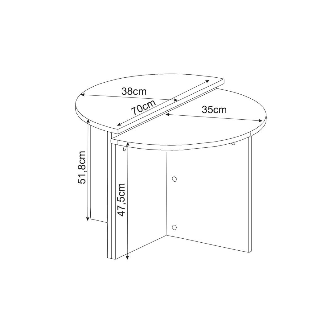 First Table: Width: 70 cm Height: 51,8 cm Depth: 38 cm