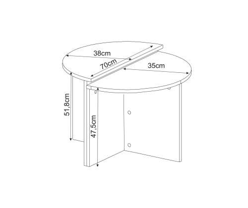 First Table: Width: 70 cm Height: 51,8 cm Depth: 38 cm