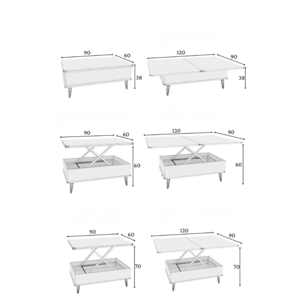 Coffee Table: Width: 90 cm Height: 38 cm Depth: 60 cm