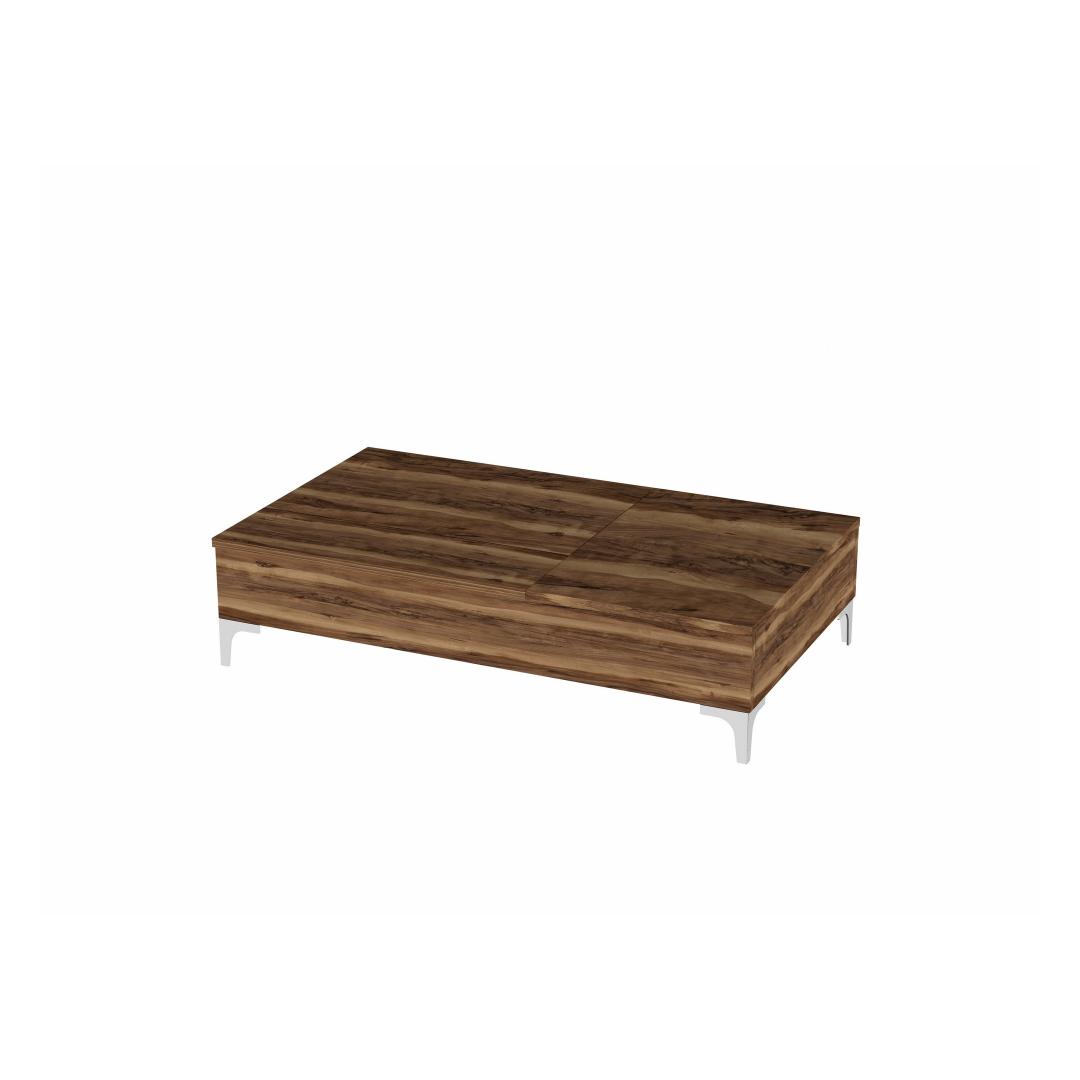 Crafted with utmost precision and attention to detail, this coffee table exudes a sense of sophistication that is sure to captivate your guests. The rich Walnut color adds a touch of warmth and depth, creating a cozy ambiance that invites relaxation and conversation.