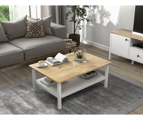 Add a touch of modern elegance to your home with this stunning coffee table. The combination of wooden and white colors creates a chic and contemporary look that will instantly elevate your living room decor. The numerous shelves provide ample storage space for all your essentials, keeping your space organized and clutter-free.