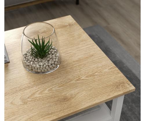 Transform your living room into a cozy and stylish haven with our exquisite Coffee Table. Crafted from 100% melamine coated particle board, this table is not only durable but also incredibly elegant. The sleek design, featuring MDF profile legs and metal handles, adds a touch of sophistication to any space.