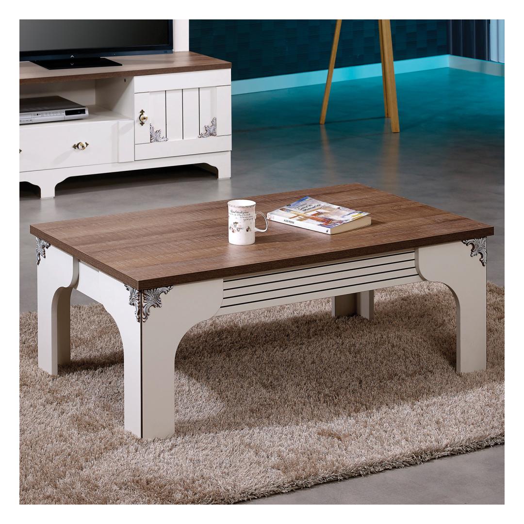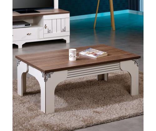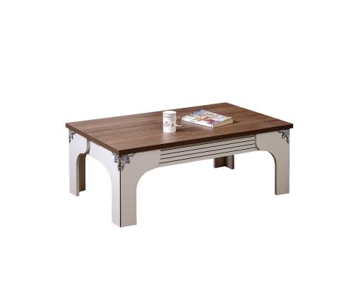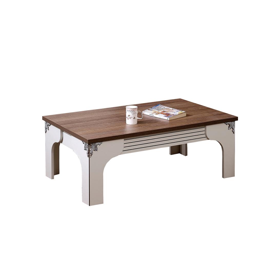 The Coffee Table features a harmonious blend of white and brown colors, adding a touch of sophistication to your living space. The contrasting colors create a visually appealing look, making it a versatile piece that complements any interior style.