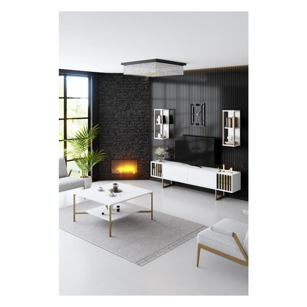 Coffee Table Gold Line - White, Black