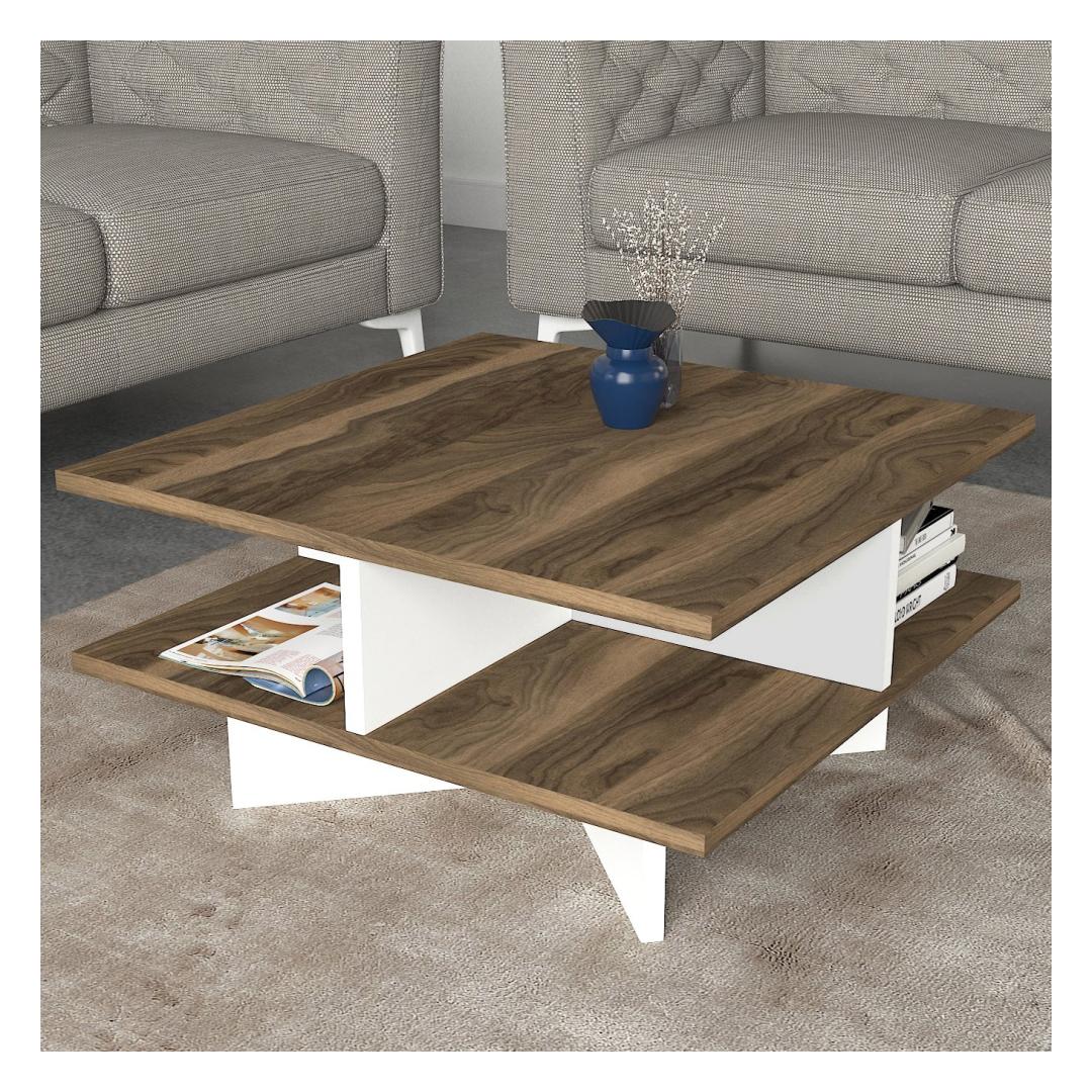 With its sleek and minimalist design, our coffee table effortlessly blends into any interior style, adding a touch of sophistication to your living room. The combination of Walnut and White colors creates a harmonious contrast, making it a stunning focal point in your space.