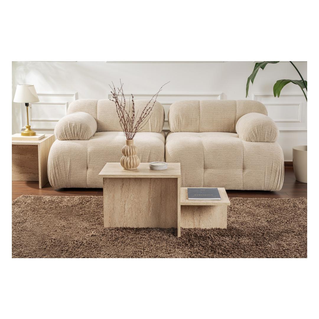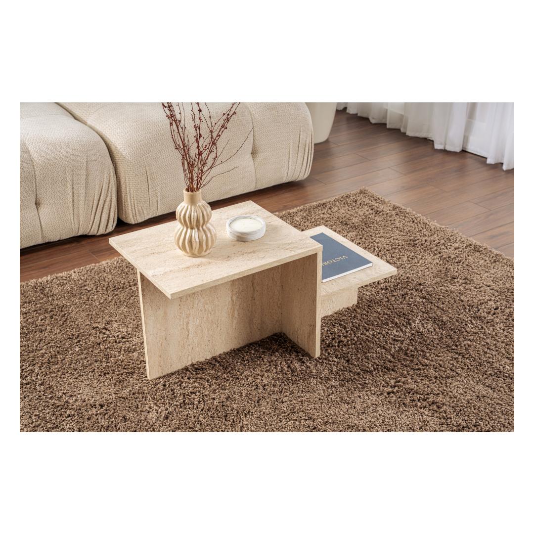 Esitleme meie kaunist marmorist kohvilauda, mis tõstab iga eluruumi stiili oma elegantse disaini ja luksusliku viimistlusega. Valmistatud 100% melamiinkattega puitlaastplaadist, on see kohvilaud mitte ainult visuaalselt atraktiivne, vaid ka vastupidav ja pikaealine.Tõsta oma eluruumiKujutle, et tuled pärast pikka päeva koju ja lõõgastud selle kauni kohvilauda ees, nautides oma lemmikjooki ja elegantset atmosfääri, mida see sinu koju toob. Travertiini värv lisab luksuse ja rafineerituse puudutuse, muutes selle ideaalseks keskpunktiks sinu elutoas.Kvaliteetne käsitööLaua 18 mm paksus tagab stabiilsuse ja tugevuse, samas kui mõõtmed 80 cm laius, 40 cm kõrgus ja 40 cm sügavus pakuvad piisavalt ruumi sinu kohvilaudadele, dekoratsioonidele ja muule. Marmorikontseptsioon lisab sinu kodu sisustusele elegantsi ja klassi, muutes selle silmapaistvaks tükiks, mis jätab mulje sinu külalistele.Tehnilised andmed:Materjal: 100% melamiinkattega puitlaastplaatPaksus: 18 mmLaius: 80 cmKõrgus: 40 cmSügavus: 40 cmVärv: TravertiiniKontseptsioon: MarmorÄra jäta kasutamata võimalust lisada see kaunis marmorist kohvilaud oma koju. Tõsta oma eluruumi ja loo stiilne ning rafineeritud atmosfäär, kuhu on hea naasta. Tellige oma täna ja kogege luksust ise! Värv: Travertine