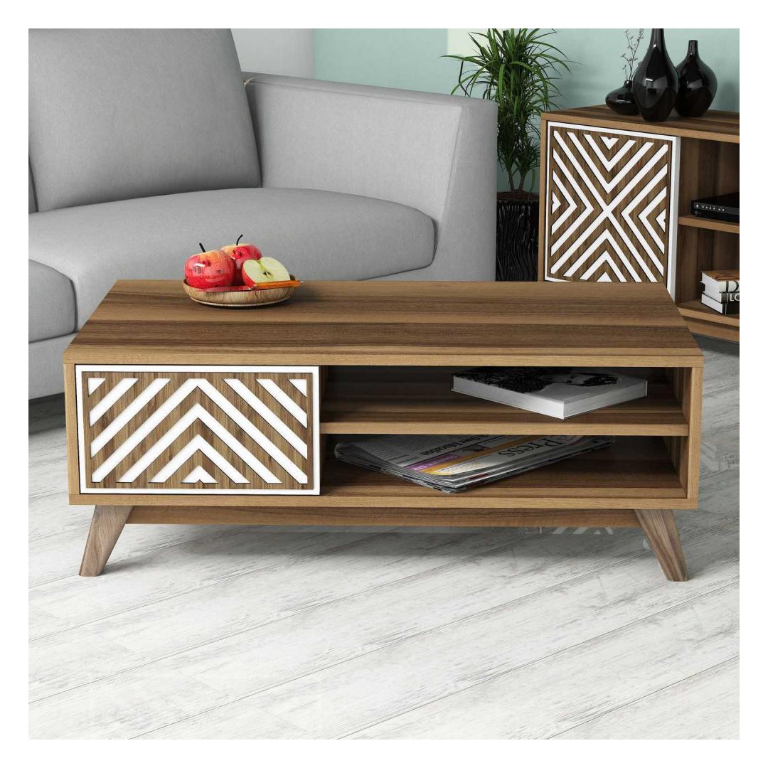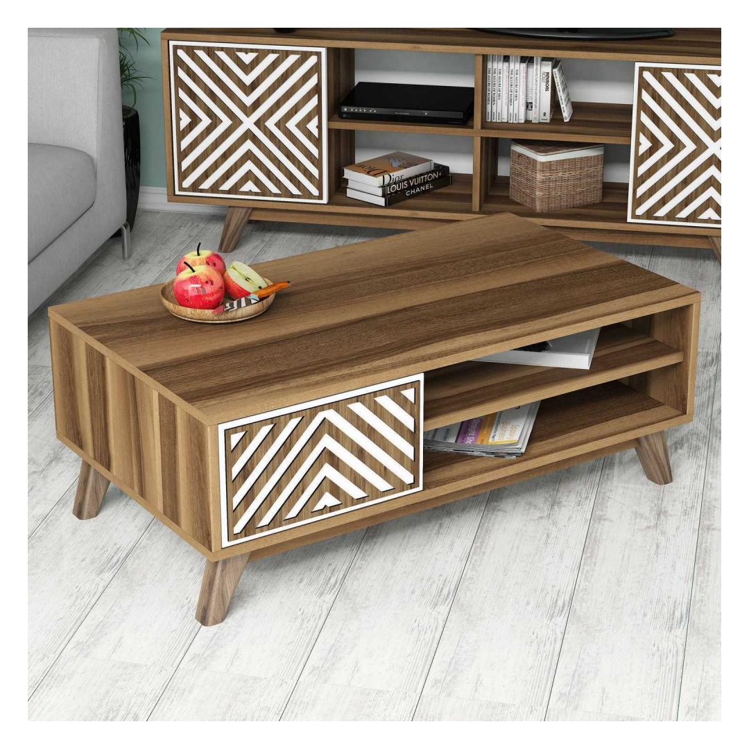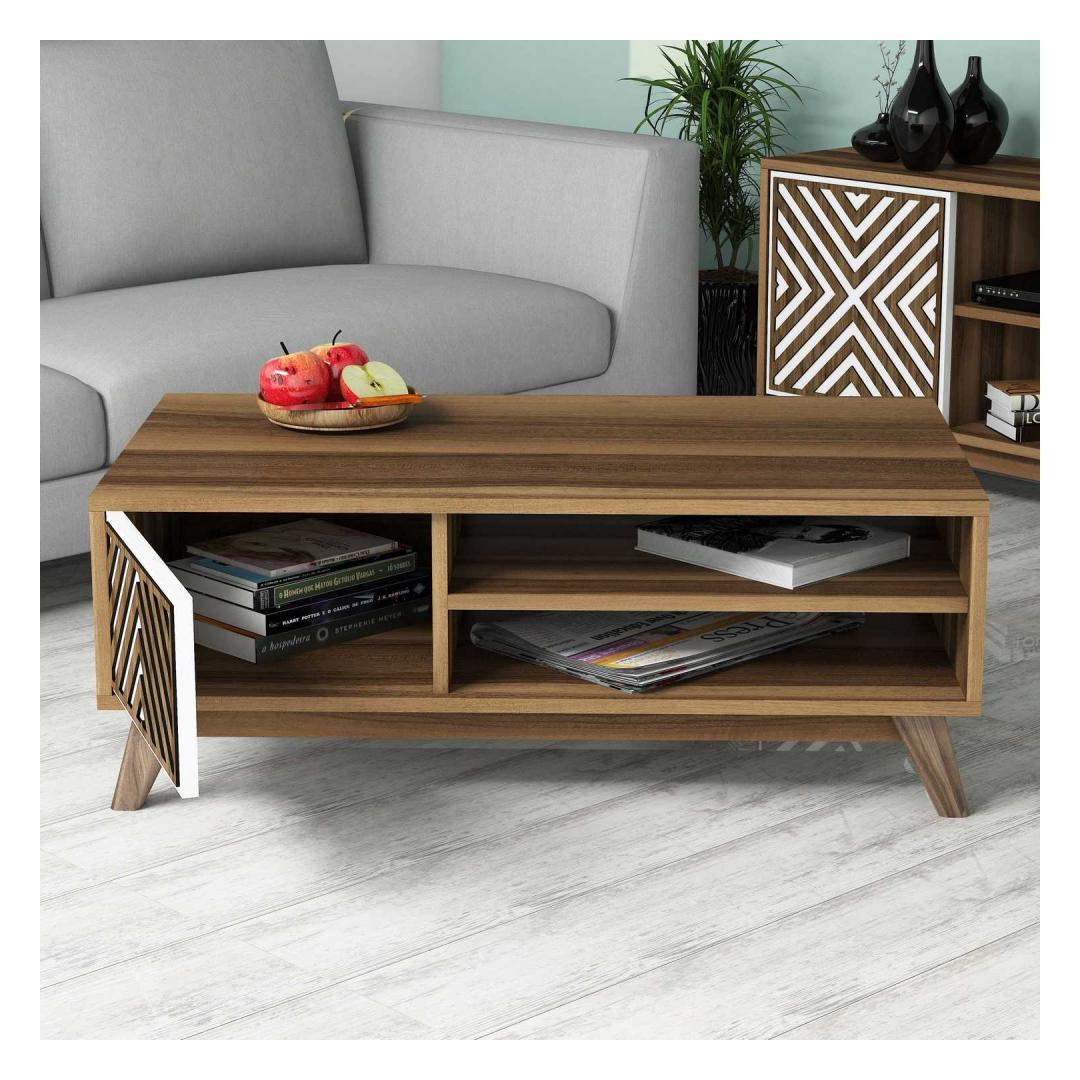 Crafted from 100% melamine coated particle board, this coffee table is built to last. The 18 mm thickness ensures sturdiness and stability, while the walnut and white color combination adds a touch of warmth and sophistication to any decor.