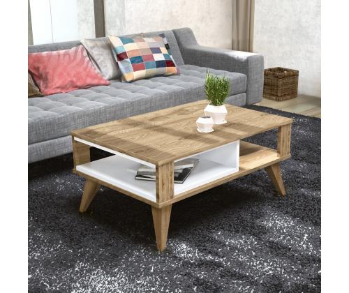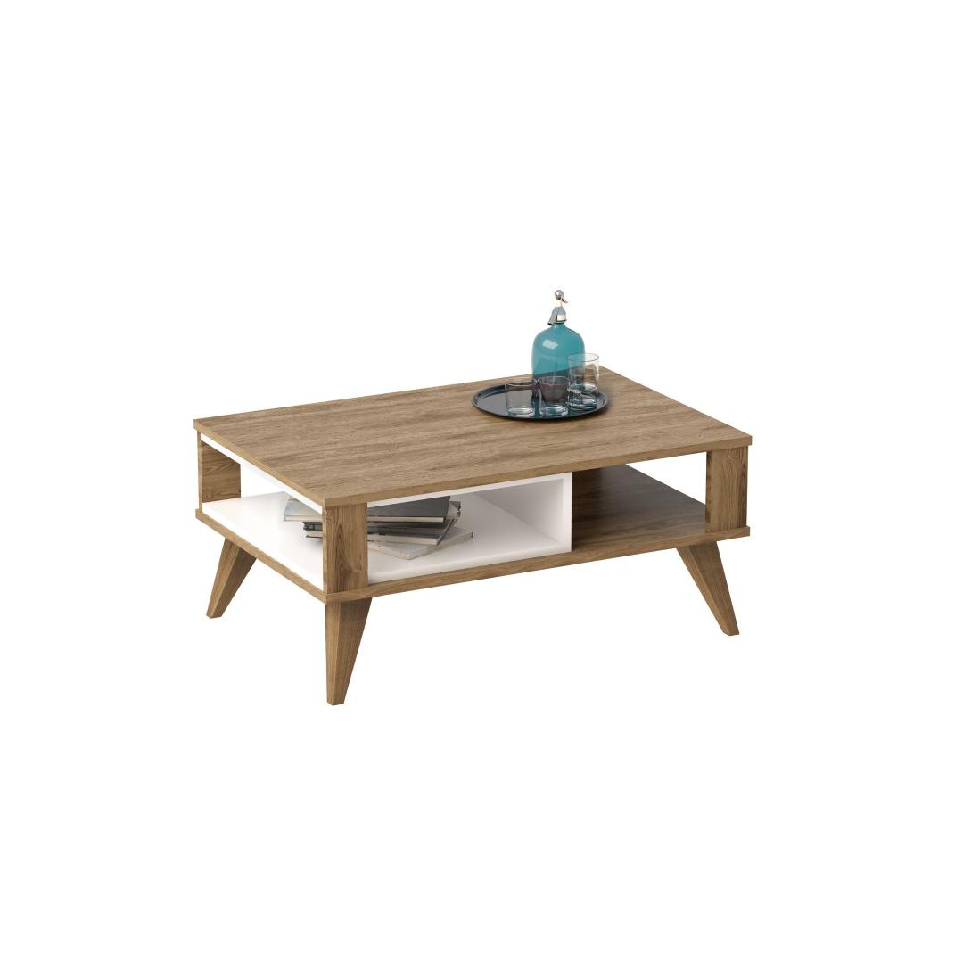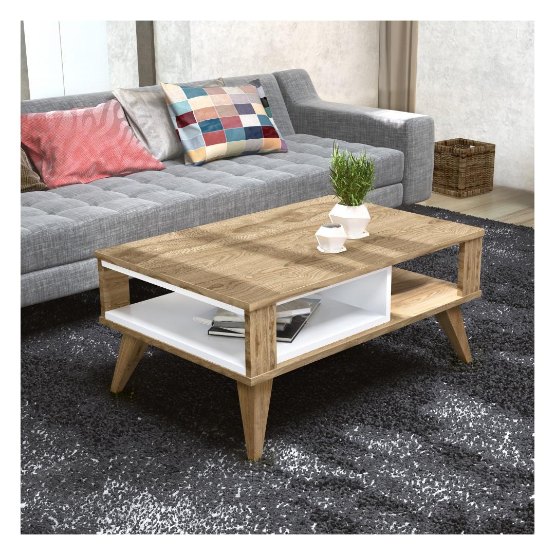 With its sleek and contemporary design, our Coffee Table is the perfect centerpiece for your living room. Its unique combination of oak and white colors adds a touch of elegance and sophistication to any decor. Whether you're hosting a gathering or enjoying a quiet evening at home, this table will impress your guests and create a warm and inviting atmosphere.