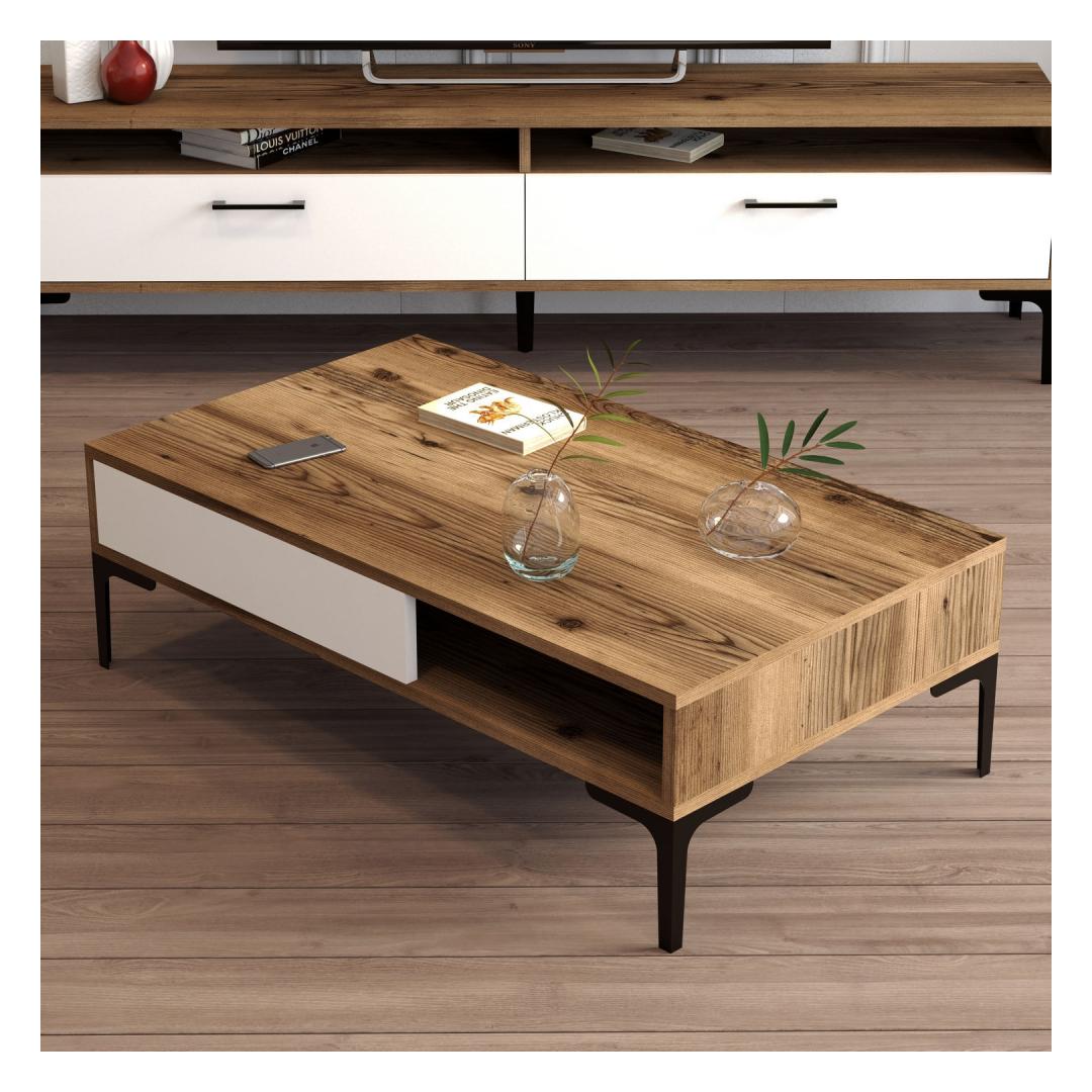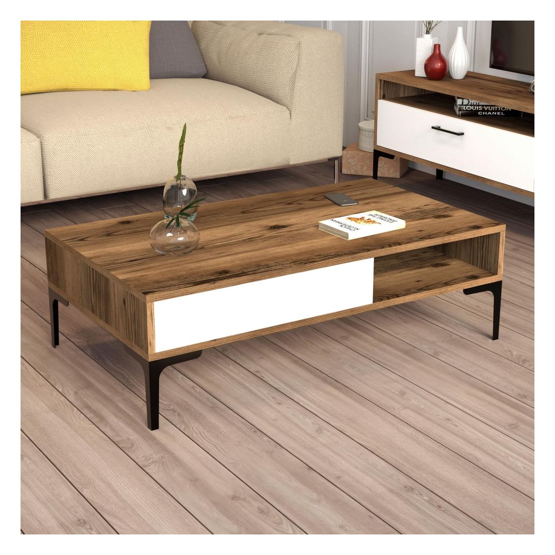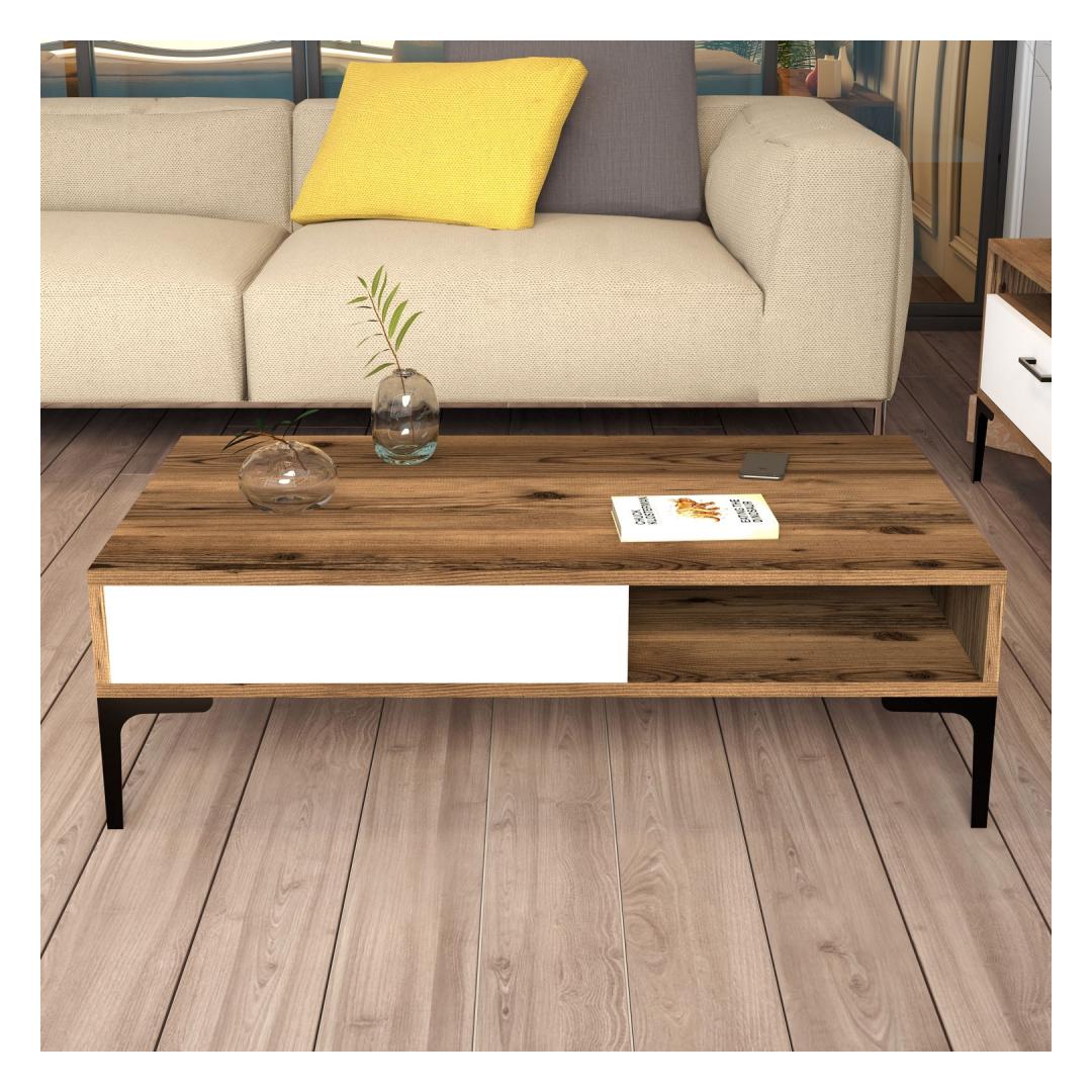 Unleash the power of emotions as you witness the seamless fusion of Walnut and White colors, creating a harmonious contrast that exudes elegance and sophistication. The 100% Melamine Coated Particle Board ensures durability and longevity, making this coffee table a timeless addition to your home.