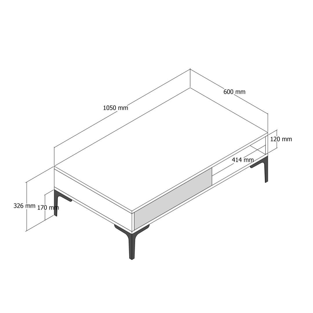 Immerse yourself in the beauty of simplicity as this coffee table effortlessly blends functionality with aesthetics. With a thickness of 18 mm and dimensions of 105 cm in width, 32.6 cm in height, and 60 cm in depth, it offers ample space to display your favorite decor items or to simply enjoy a cozy evening with a cup of coffee.
