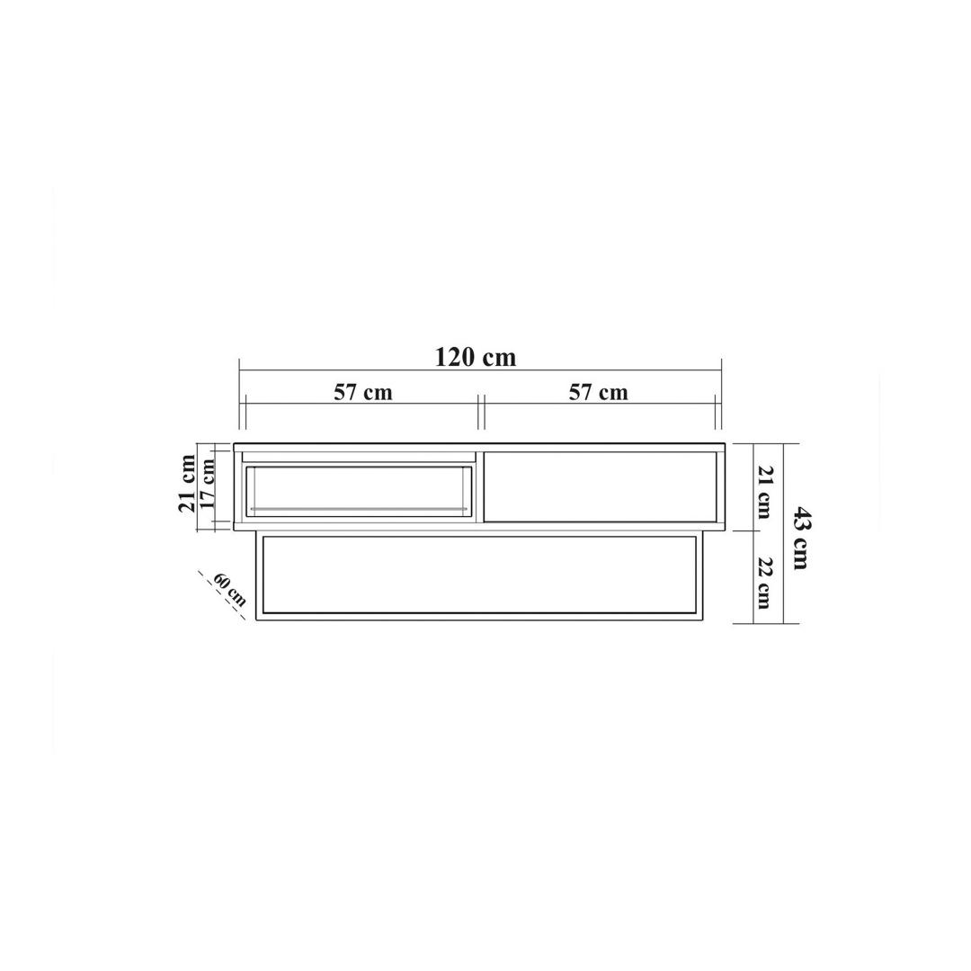 - Size: Width: 120 cm, Height: 43 cm, Depth: 60 cm