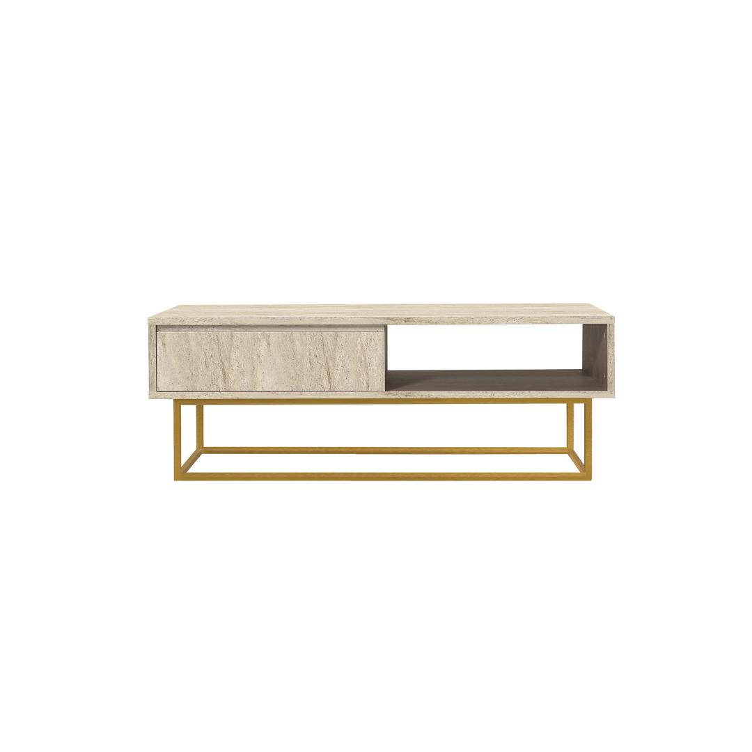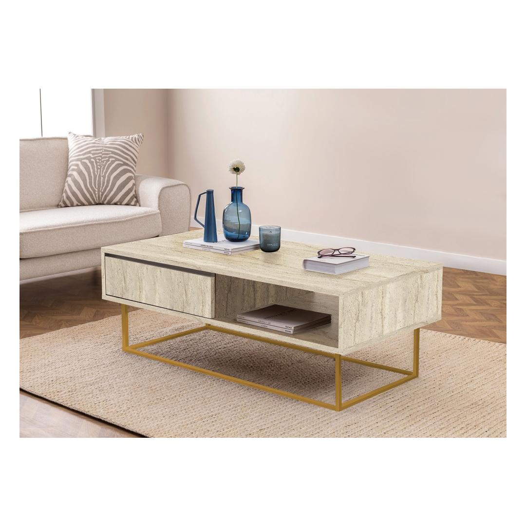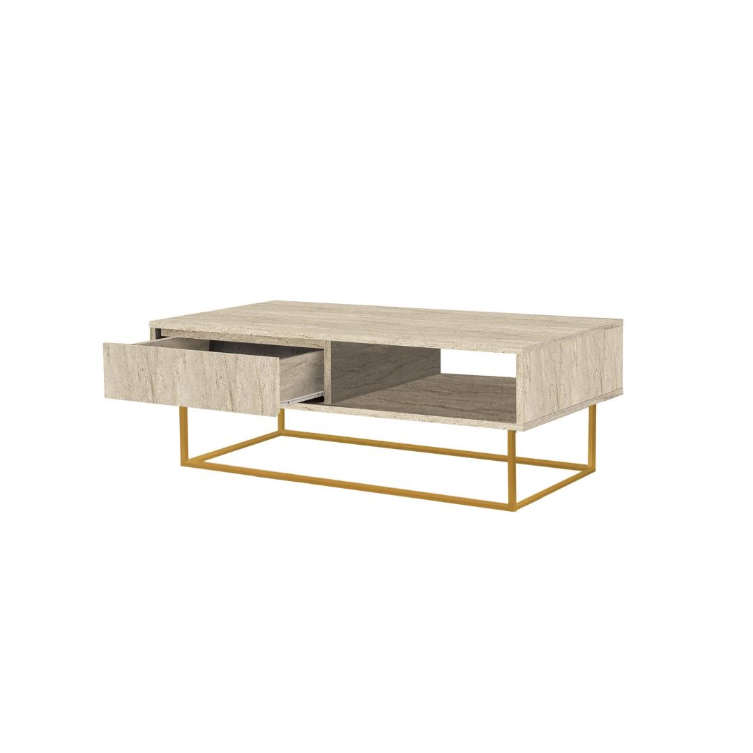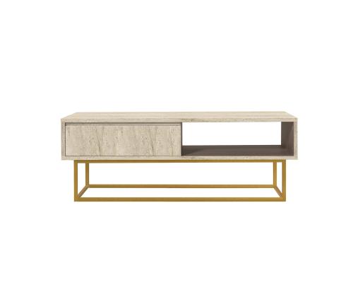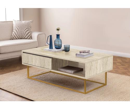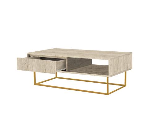 Transform your living room into a luxurious and stylish space with our Marble Coffee Table. Crafted from 100% melamine coated particle board, this coffee table exudes elegance and sophistication. The metal frame adds a modern touch, while the Travertine color adds a touch of warmth to your decor.
