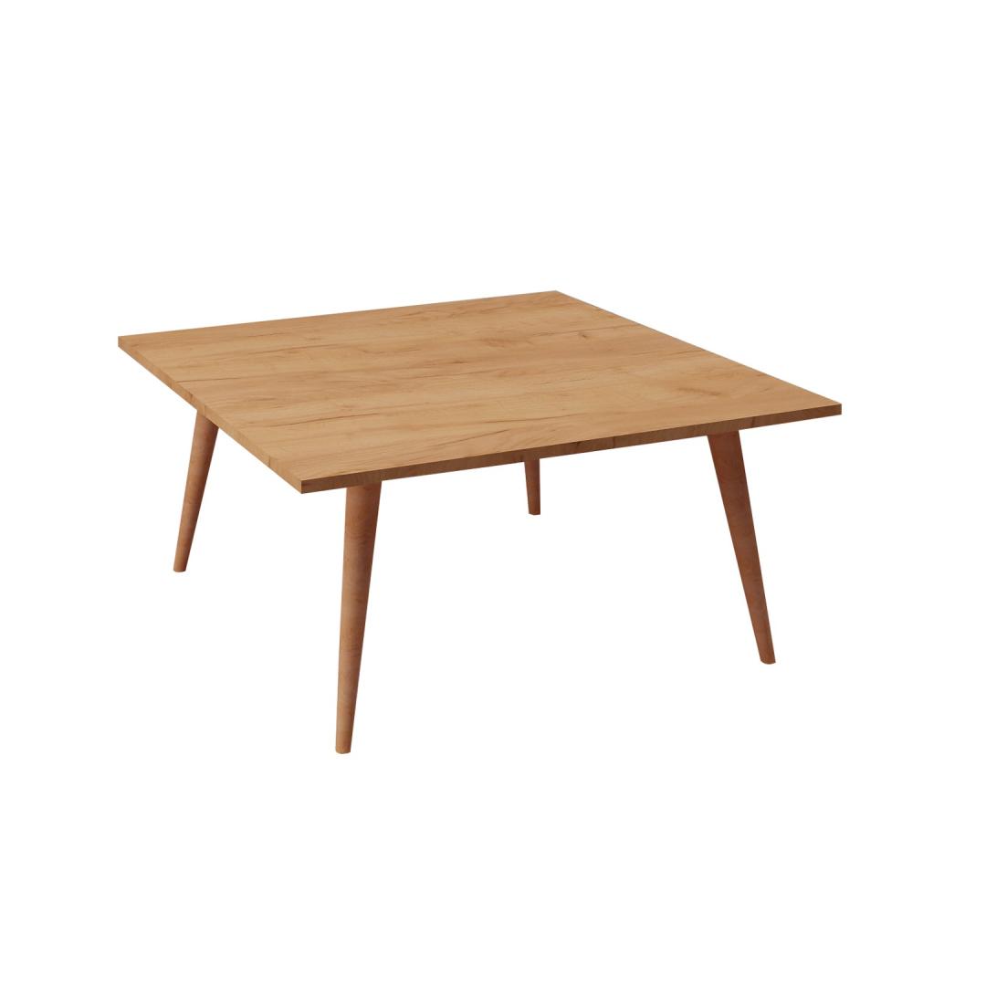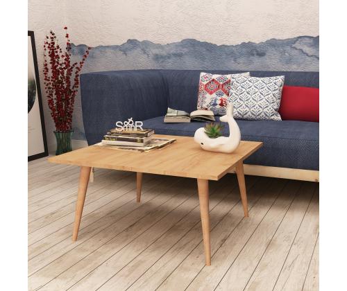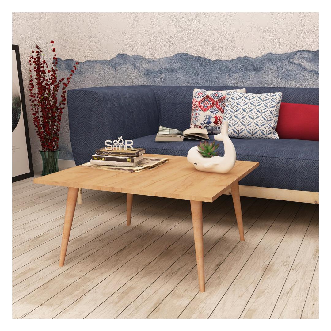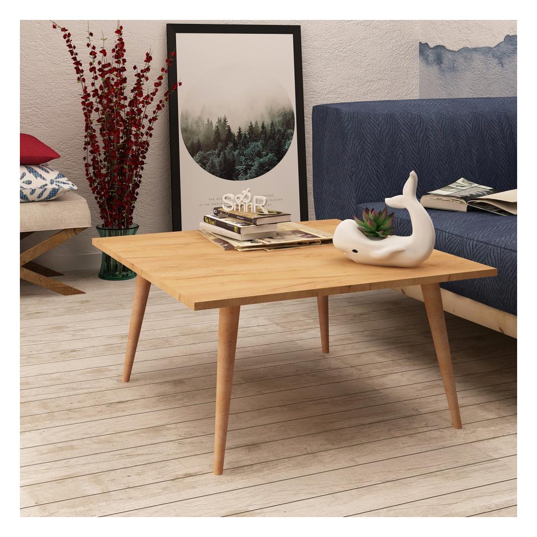 Made from 100% melamine coated particle board, this coffee table boasts exceptional durability and longevity. Its 18 mm thickness ensures a sturdy and reliable surface, capable of withstanding the demands of everyday use. The sleek wooden legs add a touch of elegance, perfectly complementing the modern design of the table.
