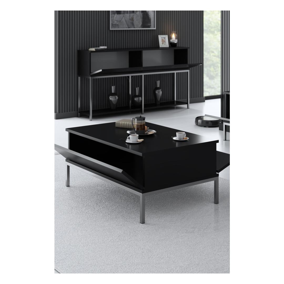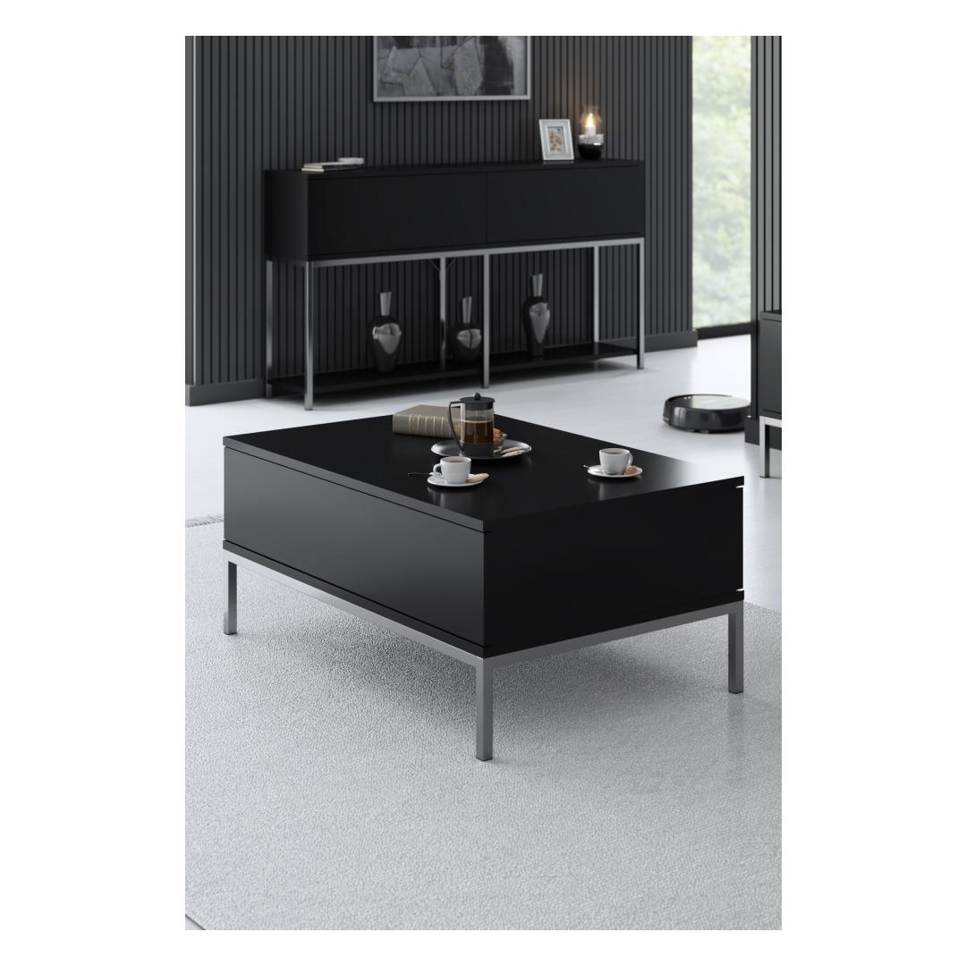 The contrasting colors of black and silver create a striking visual impact, adding a touch of modernity and elegance to your space. The sleek black tabletop beautifully complements the silver legs, creating a harmonious blend that will effortlessly match any existing decor or color scheme.