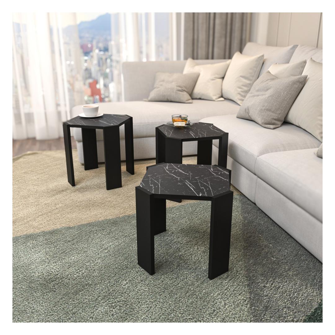 The combination of black and marble colors creates a striking contrast that adds a touch of sophistication to any room. The sleek tabletop provides ample space for your favorite books, magazines, or decorative items, while the lower shelf offers additional storage options, keeping your living space organized and clutter-free.