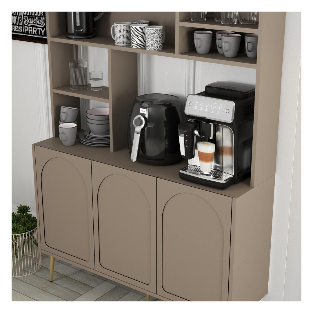 With our Coffee Bar Cabinet, you can bring the cafe experience right to your doorstep. Whether you're a coffee connoisseur or just enjoy a cozy cup of joe in the morning, this cabinet is the perfect addition to your home. Treat yourself to the luxury of having your very own coffee bar and make every cup a special experience.