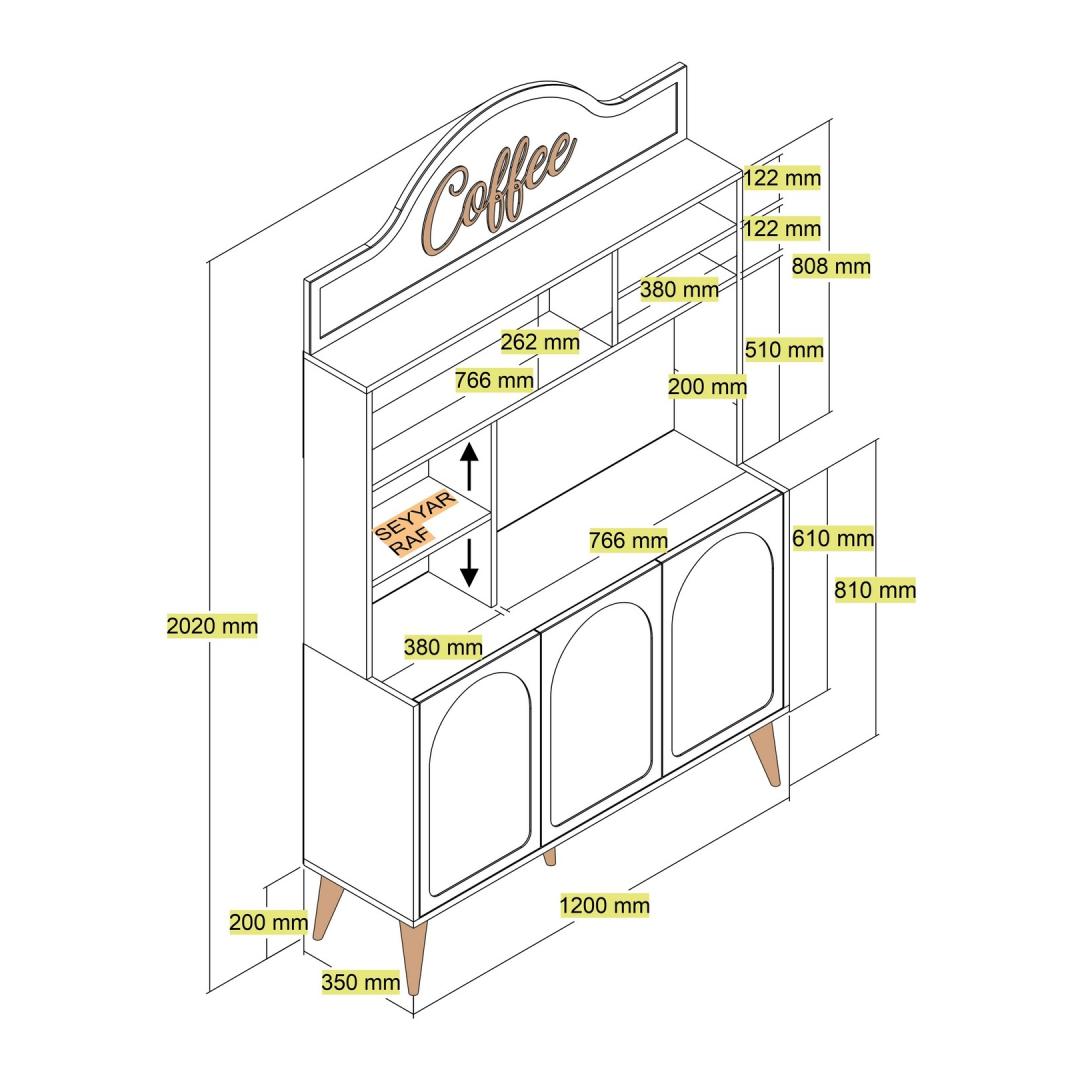 With numerous shelves and ample storage space, this cabinet is perfect for keeping all of your coffee essentials neatly organized and easily accessible. Say goodbye to cluttered countertops and hello to a perfectly curated coffee station.