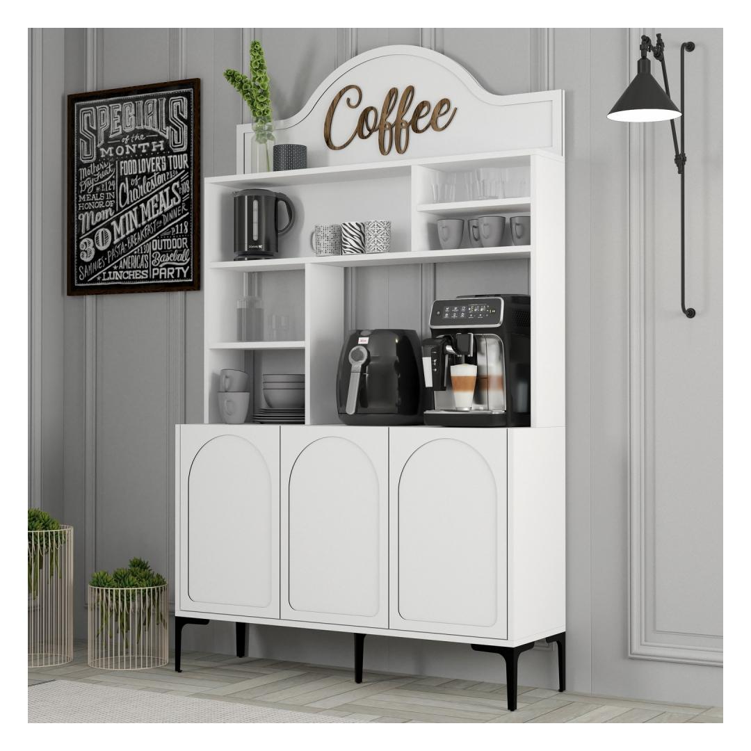Coffee Bar Cabinet Lyon 120 - White, Black