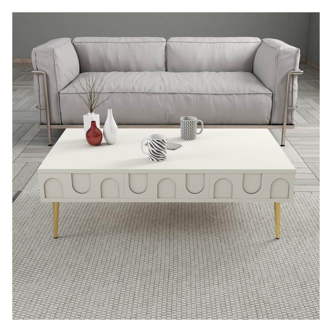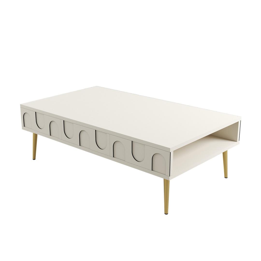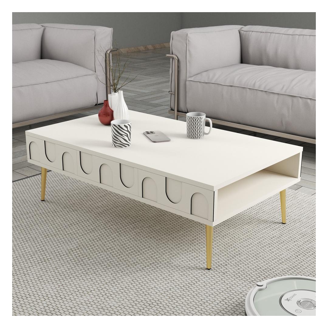 The beautiful combination of cream and gold colors will instantly elevate your decor, adding a touch of glamour and style to any room. Whether you place it in your living room, lounge area, or even your bedroom, this coffee table will be the focal point of the space.