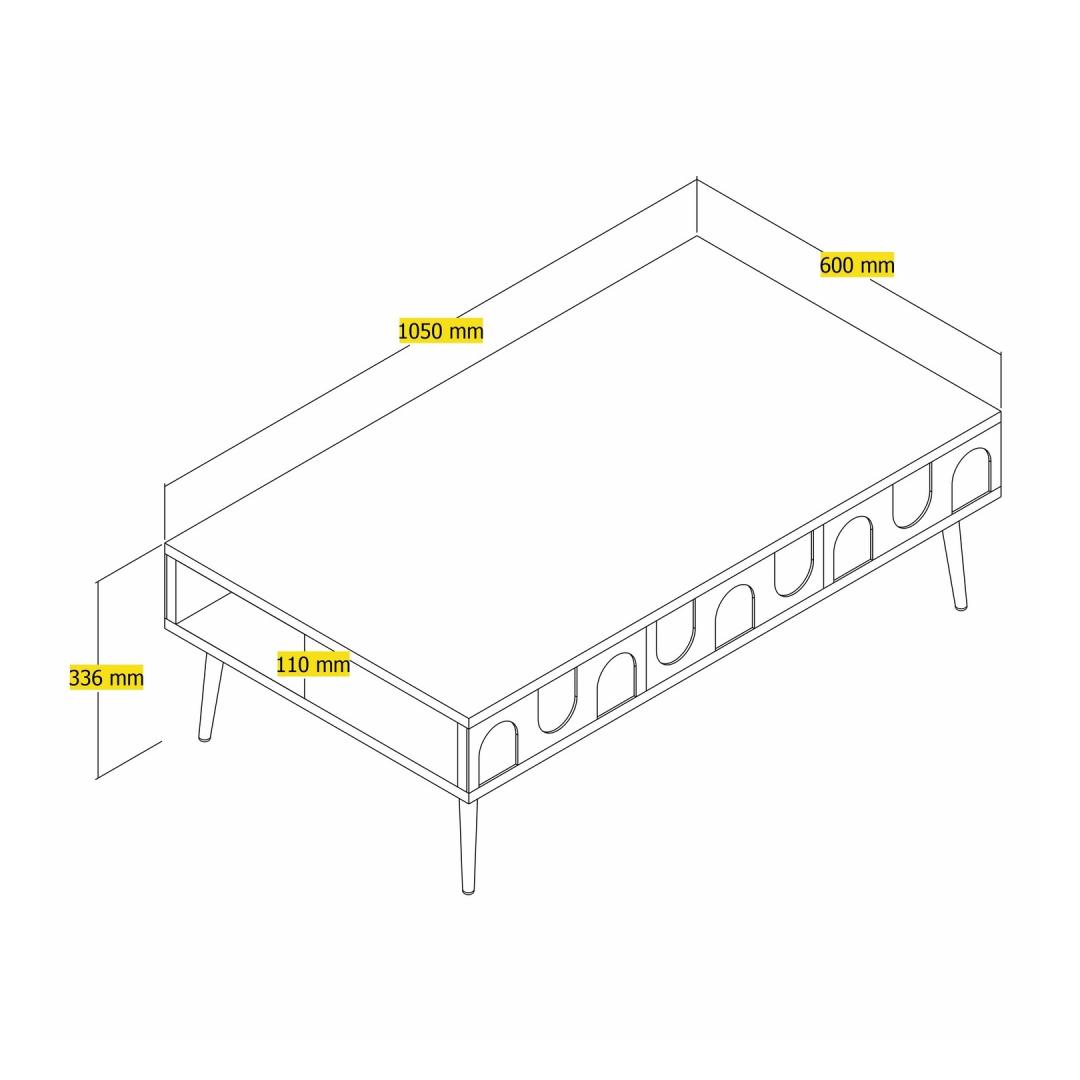 With a width of 105cm, height of 33.6cm, and depth of 60cm, this coffee table offers plenty of surface area for you to display your favorite decor items, books, or even enjoy a cozy evening with a cup of coffee.