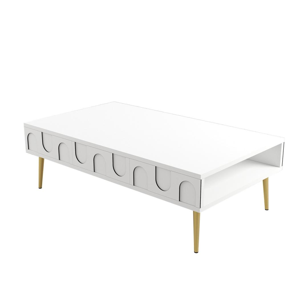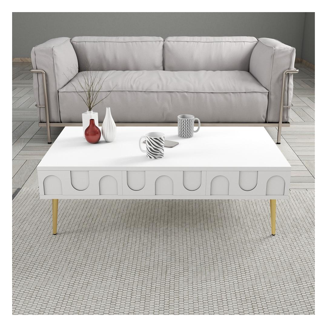 The combination of white and gold colors adds a touch of glamour to any room, making this coffee table a statement piece in your home decor. The sleek design and modern aesthetic will enhance the overall look of your living space, giving it a chic and upscale feel.