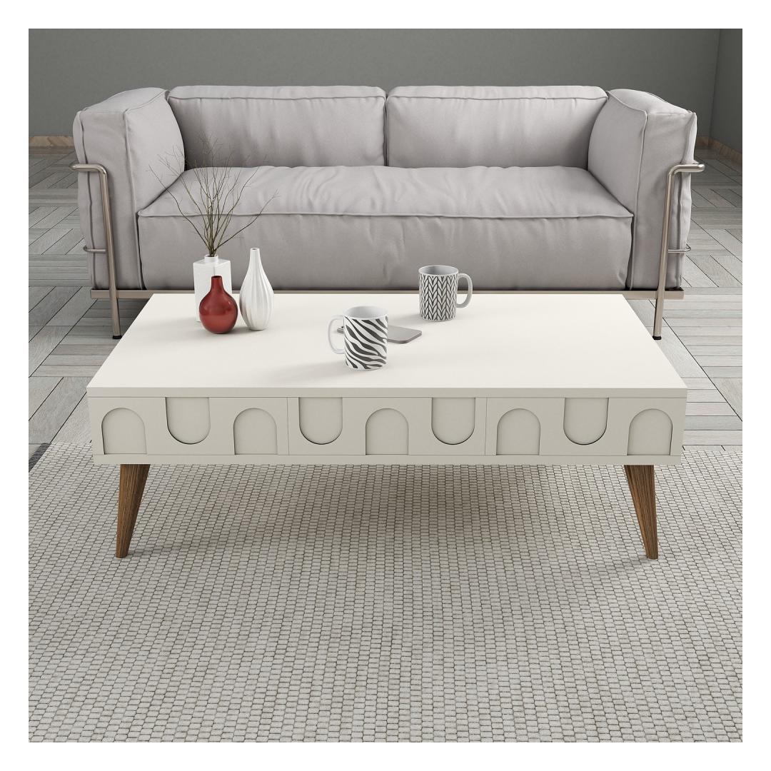 Transform your living room with our stunning coffee table, crafted with love and care to bring warmth and style to your home. The beautiful blend of Cream and Walnut colors will add a touch of elegance to any space, creating a cozy and inviting atmosphere for you and your loved ones to enjoy.