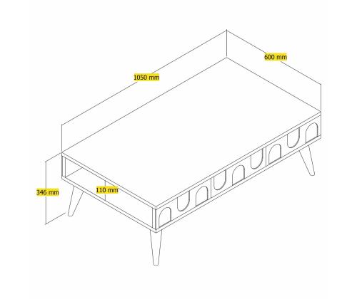 Made from 100% melamine coated particle board, this coffee table is not only stylish but also durable and long-lasting. The 18mm thickness ensures stability and strength, while the precise measurements of 105cm width, 34.6cm height, and 60cm depth make it the perfect size for any room.