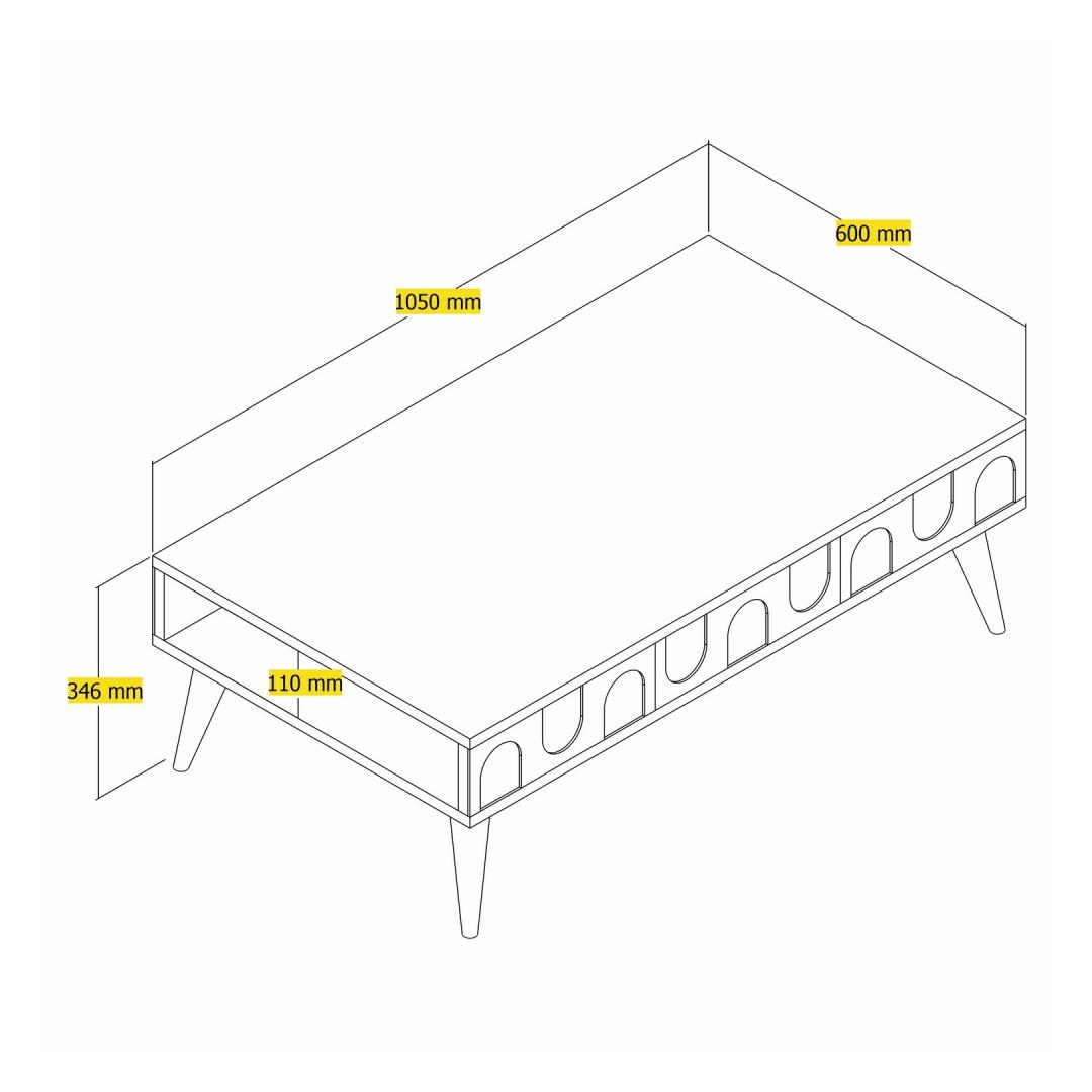 Made with 18mm thick particle board, this coffee table is built to last. The sturdy construction ensures stability and longevity, so you can enjoy this piece for years to come. The spacious dimensions of 105cm width, 34.6cm height, and 60cm depth provide plenty of room for drinks, snacks, and decor.