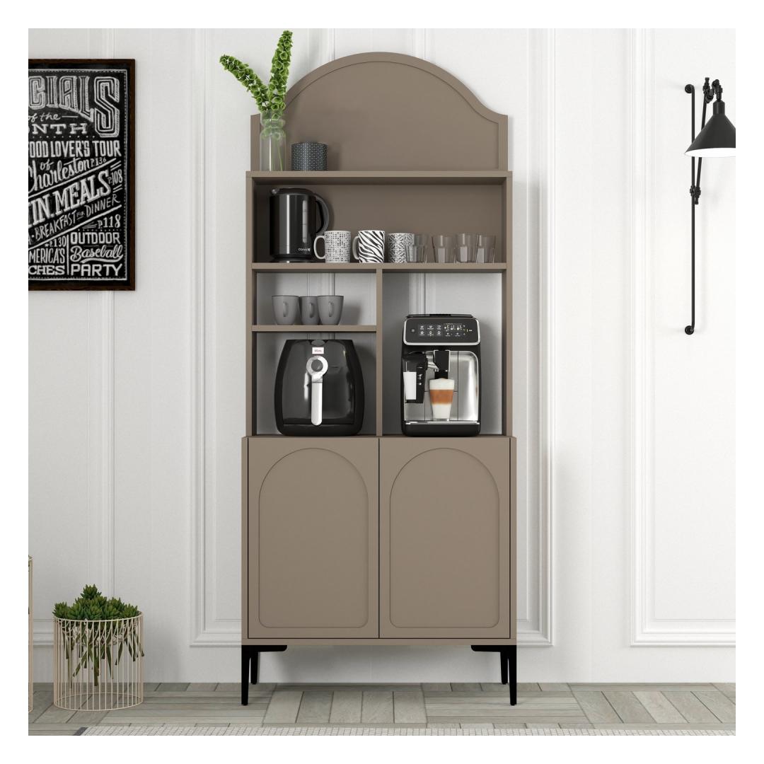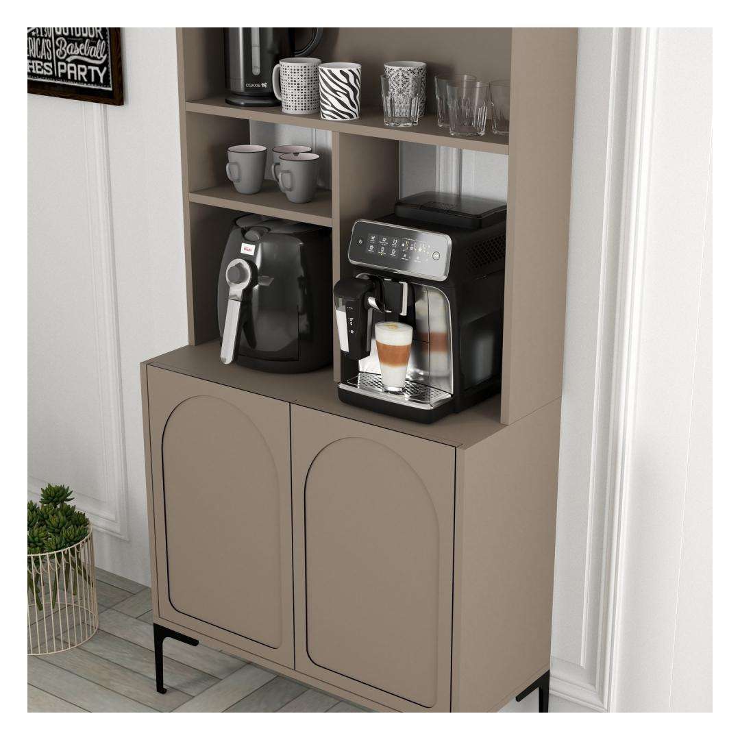Crafted from 100% melamine coated particle board, this cabinet is not only durable and long-lasting but also incredibly stylish. The Atlas and Black color combination adds a touch of sophistication to any room, while the numerous shelves provide ample storage space for all your coffee essentials.