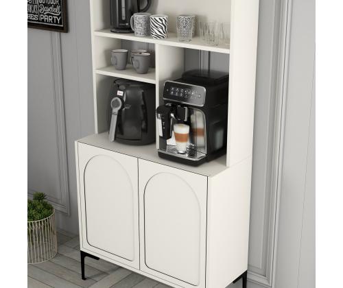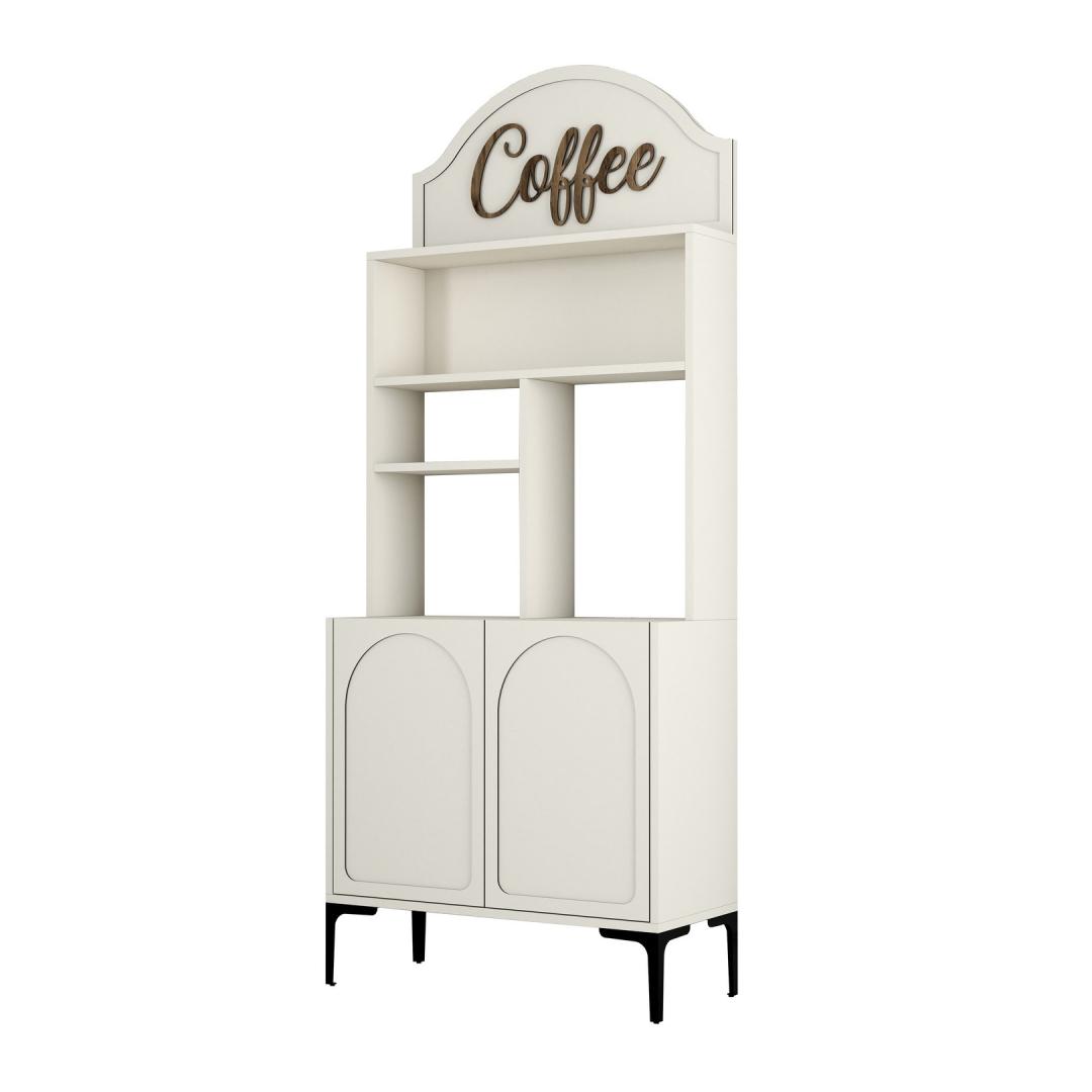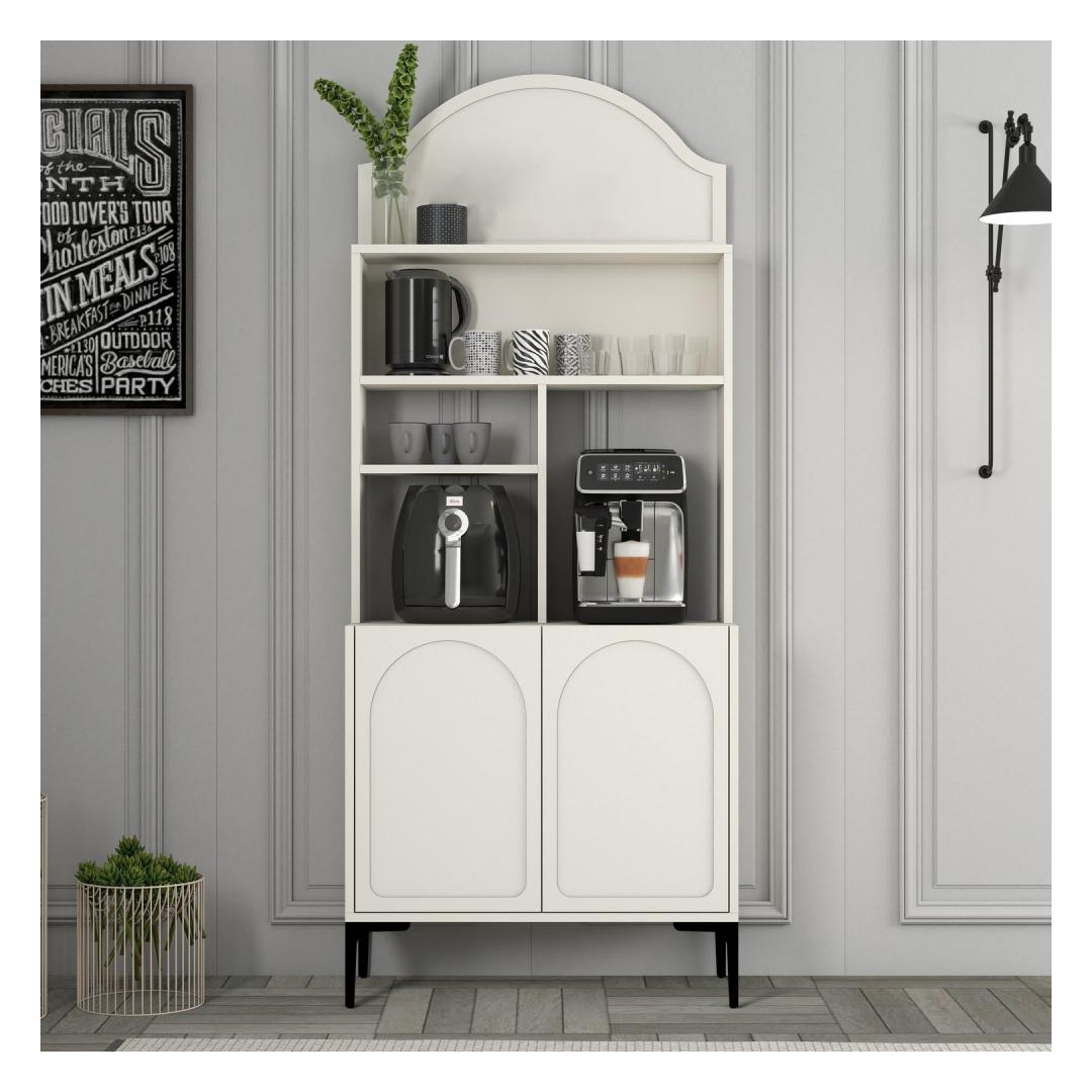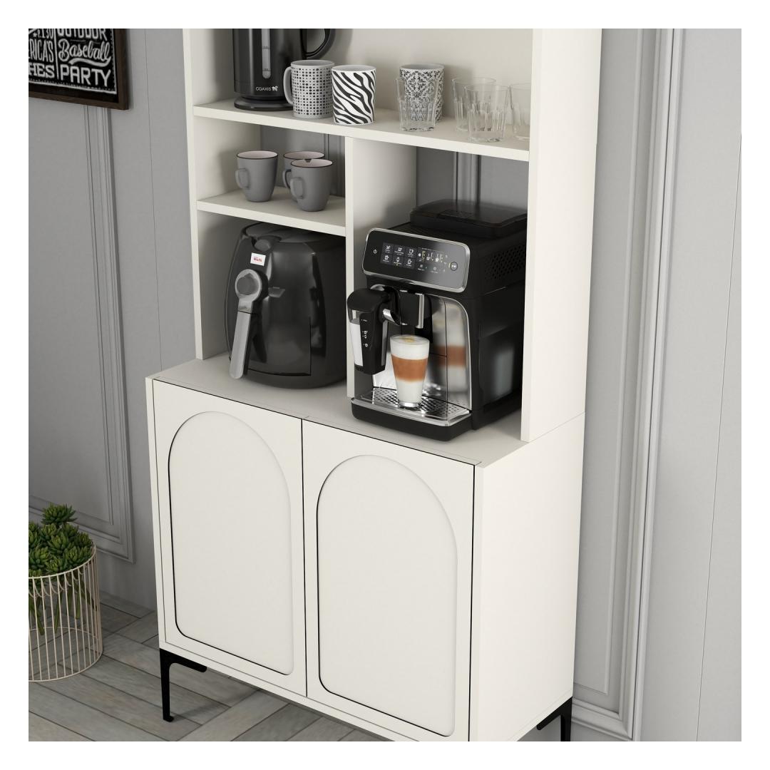 Crafted from 100% melamine coated particle board, this cabinet is built to last. The 18mm thickness ensures sturdiness and durability, while the numerous shelves provide ample storage space for all your coffee essentials. The cream and black color combination adds a touch of sophistication to the piece, making it a stylish addition to any room.
