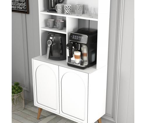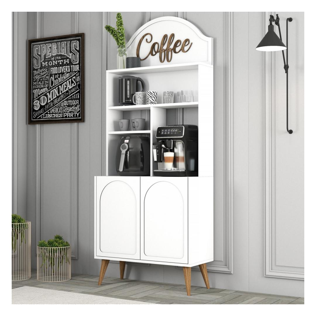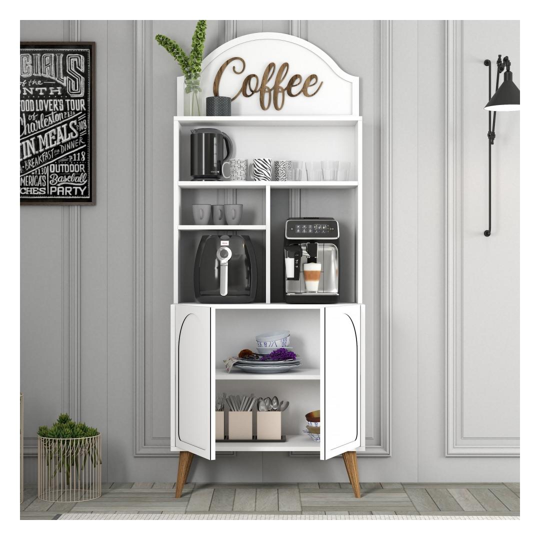 Imagine starting your day with a perfectly organized coffee station, complete with all your favorite mugs, beans, and accessories neatly displayed on the numerous shelves of this stylish cabinet. Everything you need to brew the perfect cup is right at your fingertips, making your morning routine a breeze.