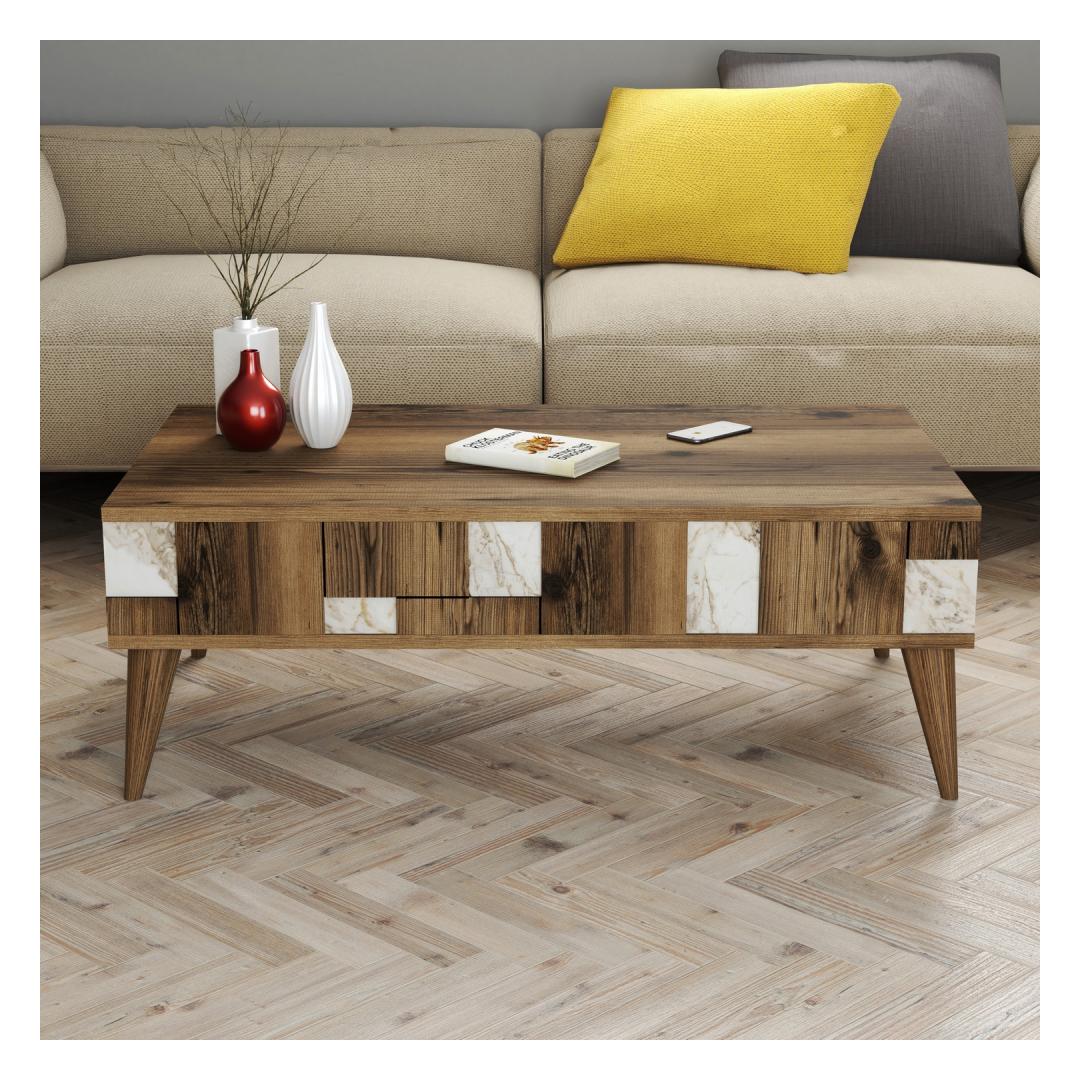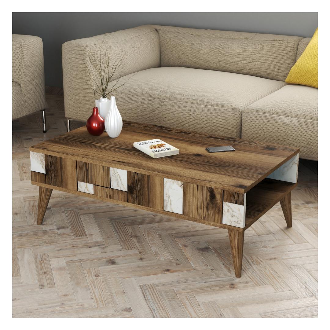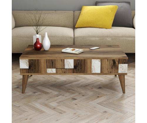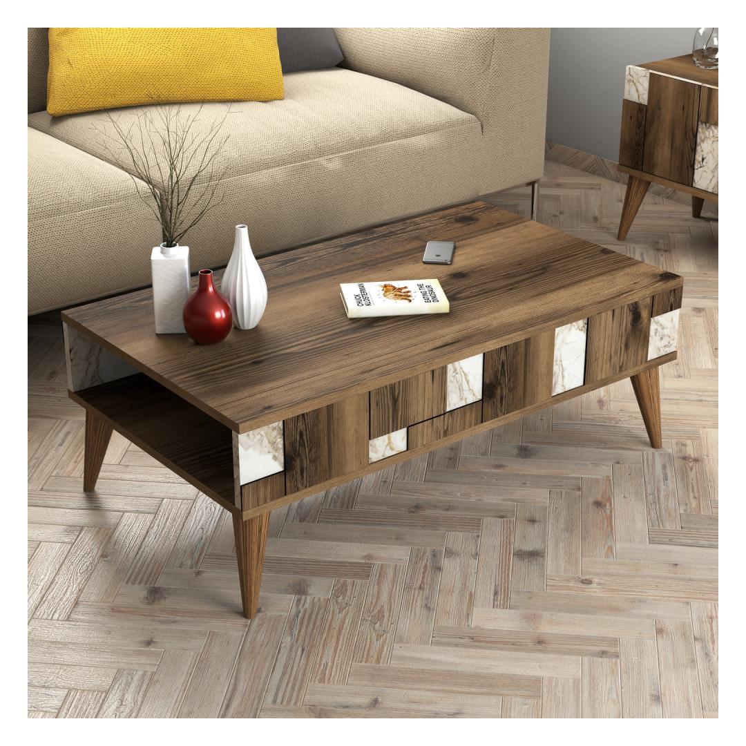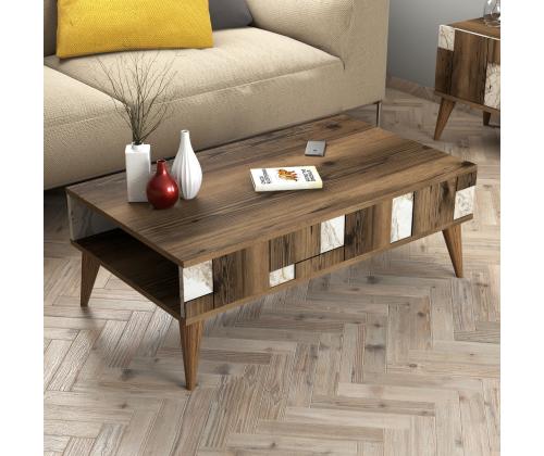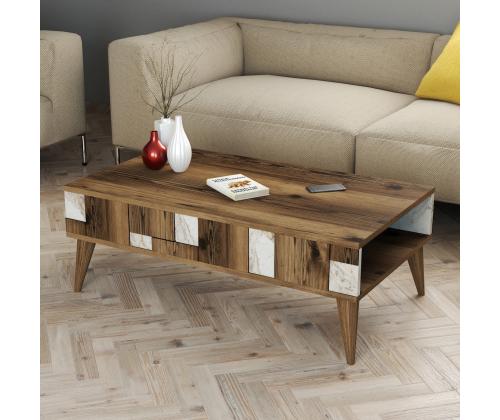 The Coffee Table features a stunning combination of white and walnut colors, creating a harmonious contrast that adds depth and character to your space. The white hue brings a sense of purity and tranquility, while the walnut adds a touch of warmth and richness.