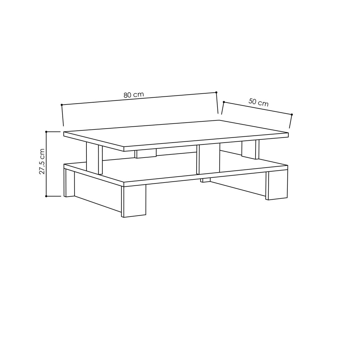With a width of 80 cm, height of 27.5 cm, and depth of 50 cm, this coffee table is designed to fit seamlessly into any space. Whether you have a small apartment or a spacious living room, this versatile piece will effortlessly adapt to your needs.