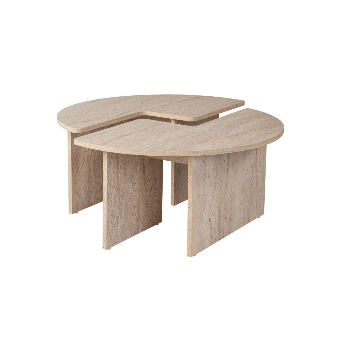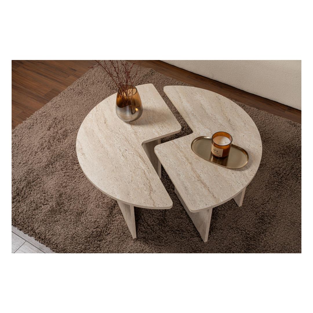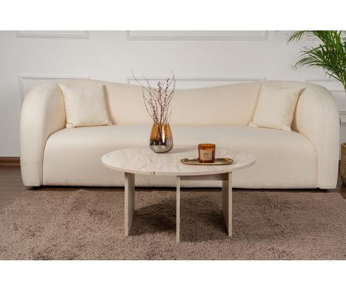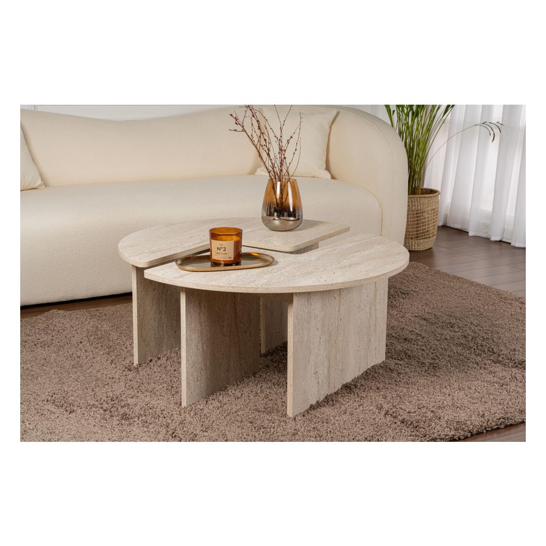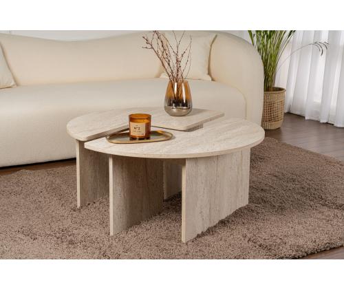 Esitleme meie hämmastavat marmorist kohvilauda, mis tõstab iga eluruumi stiili oma elegantse disaini ja luksusliku viimistlusega. Selle kohvilauda sujuv ja modernne välimus lisab teie koju koheselt peenust, muutes selle ideaalseks keskpunktiks teie elutoas.Tõstke oma eluruumiKujutage ette, et tulete pärast pikka päeva koju ja lõõgastute selle kauni marmorist kohvilauda ees, nautides oma lemmikjooki ja rahulikku atmosfääri, mida see teie ruumi toob. Selle travertiini värv lisab soojust ja rikkust, luues hubase ja kutsuva õhkkonna teile ja teie külalistele.Luksuslik disainValmistatud 100% melamiinkattega puitlaastplaadist, on see kohvilaud mitte ainult stiilne, vaid ka vastupidav ja pikaealine. 18 mm paksus tagab stabiilsuse ja tugevuse, muutes selle usaldusväärseks mööbliesemeks teie kodus. Ø90 laius ja 41 cm kõrgus pakuvad piisavalt ruumi, et eksponeerida oma lemmikdekoreid või lihtsalt jalgu üles tõsta ja lõõgastuda.Tehnilised andmed:Materjal: 100% melamiinkattega puitlaastplaatPaksus: 18 mmSuurus: Laius: Ø90 Kõrgus: 41 cmVärv: TravertiiniKontseptsioon: MarmorÄrge jätke kasutamata võimalust tuua oma koju luksuse ja peenuse puudutus meie marmorist kohvilaudadega. Uuendage oma eluruumi juba täna ja kogege, millist erinevust see teie igapäevaelus võib teha. Värv: Travertine